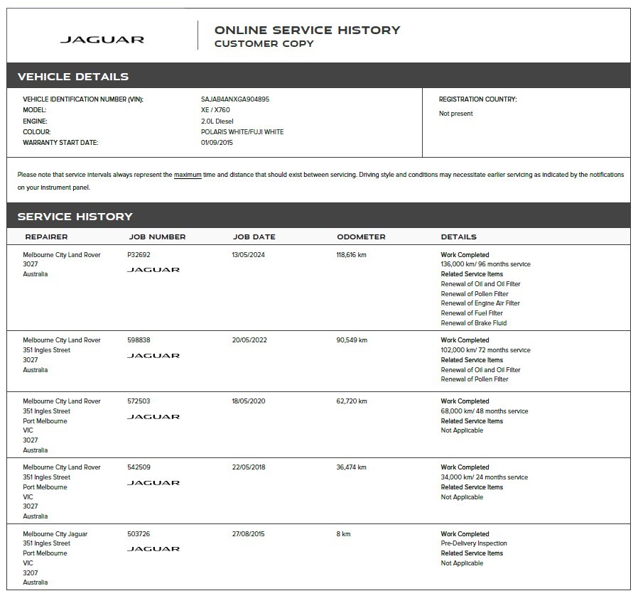 • Service History: Yes