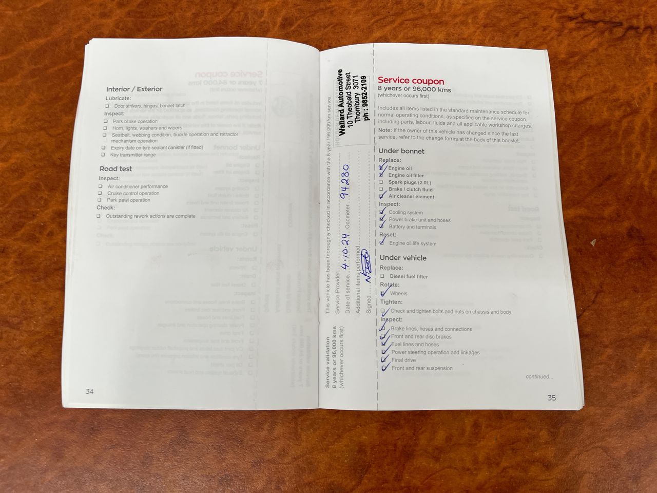 • Dents or marks on body consistent with age and kilometres.