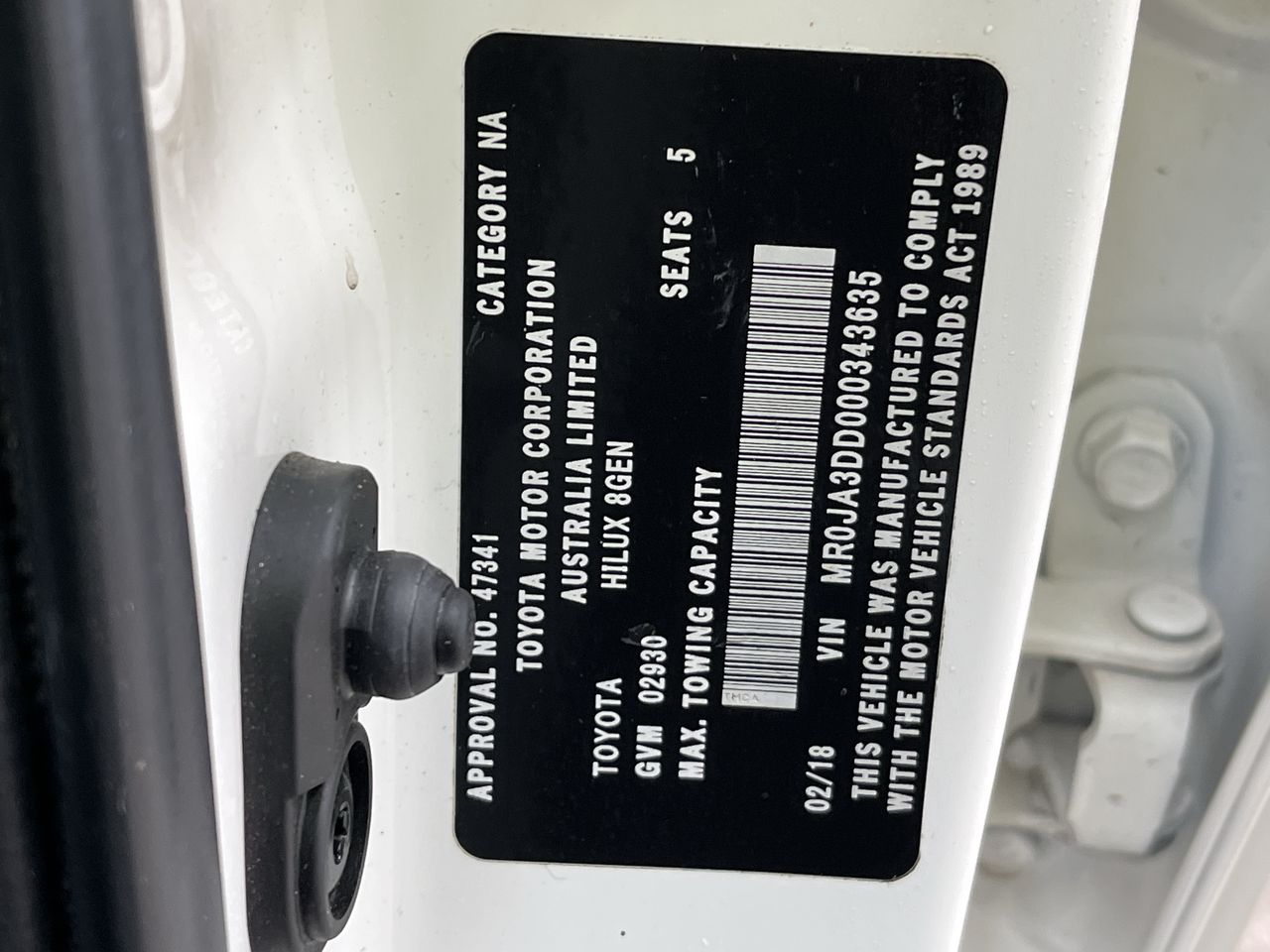 Part of Sale 2018 Toyota Hilux 4X2 SR Hi Rider GUN136R Turbo Diesel Automatic Dual Cab