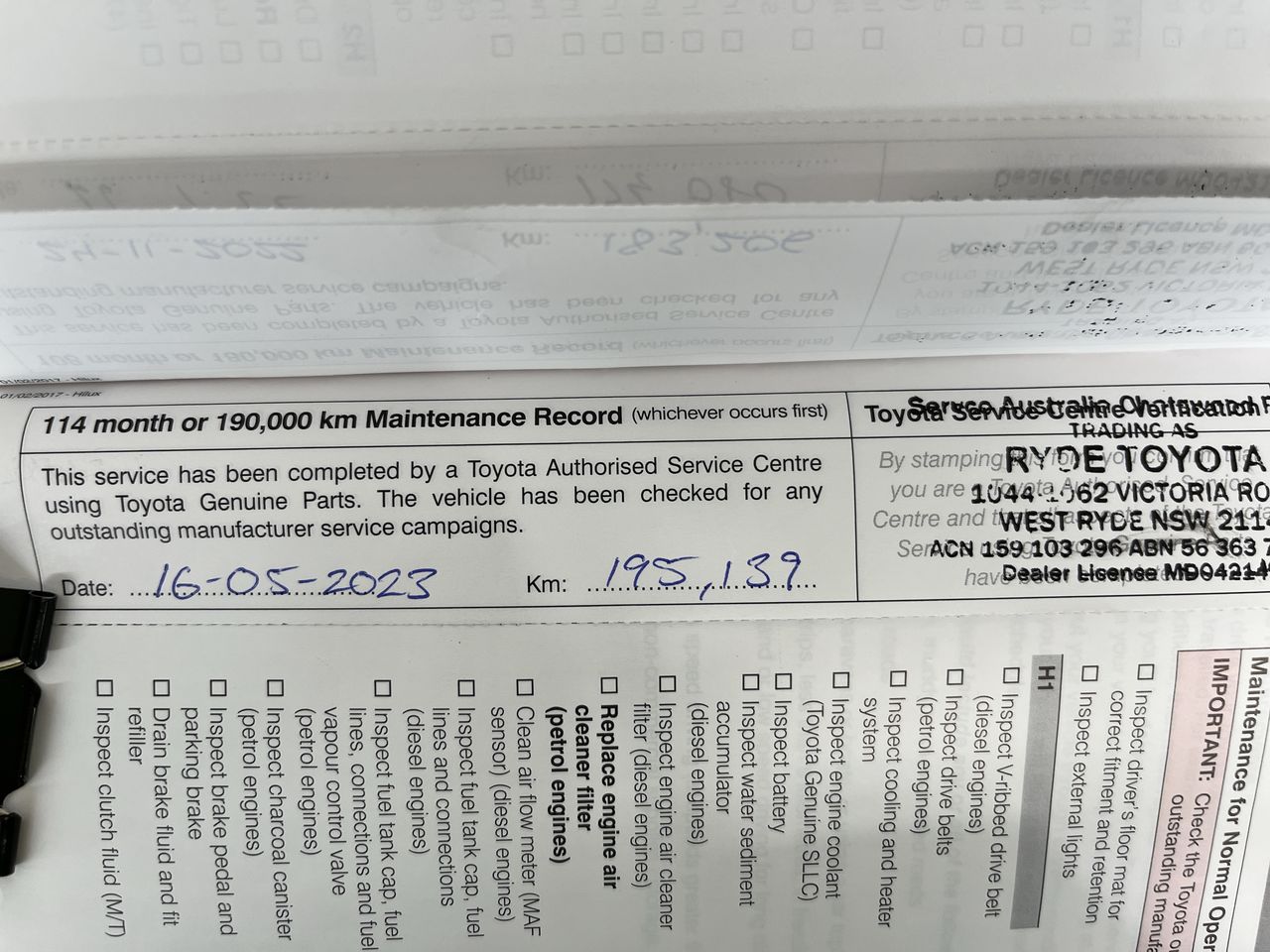 • Dents or marks on body consistent with age and kilometres.