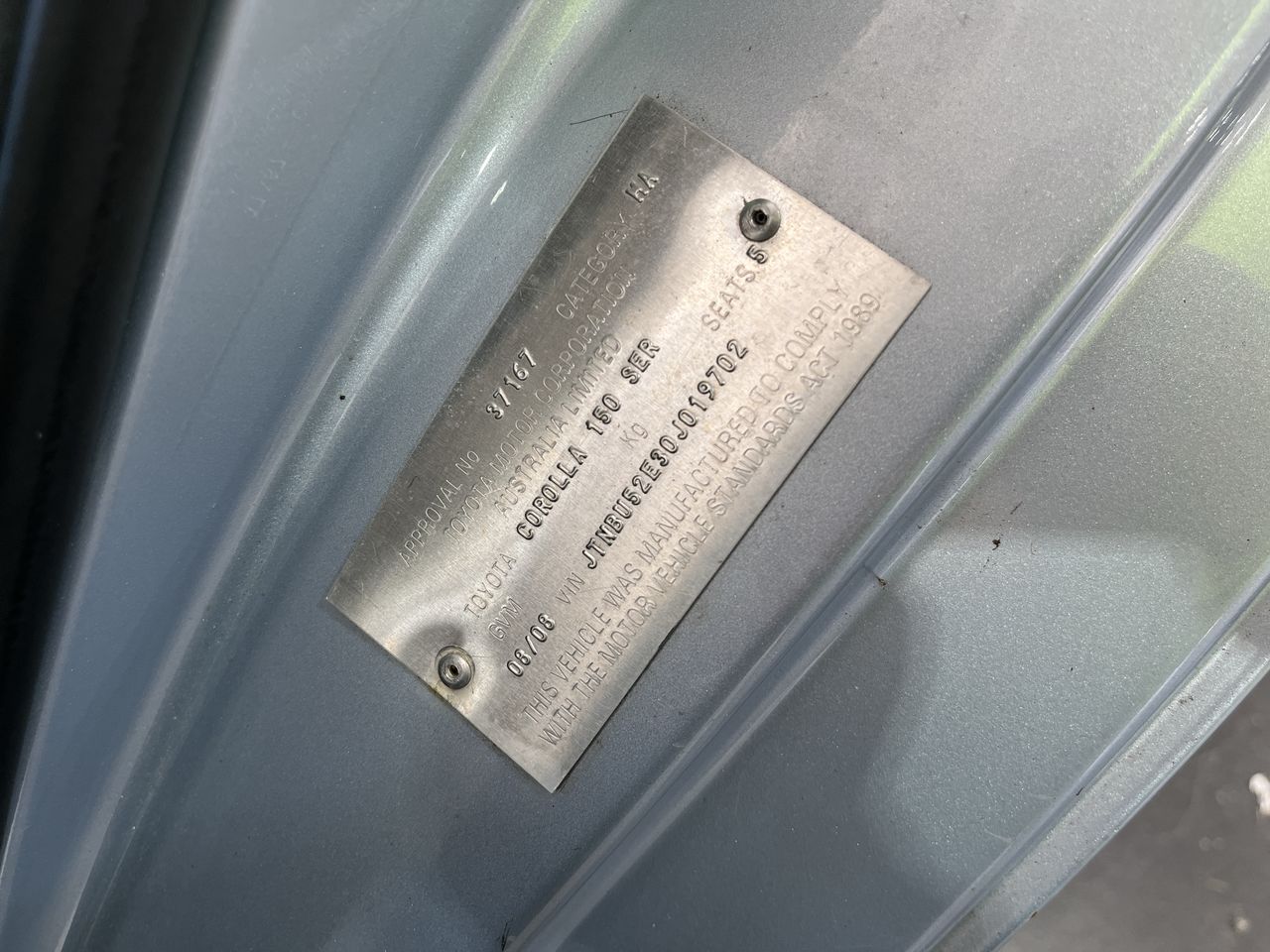 2008 Toyota Corolla Ascent ZRE152R Manual Sedan