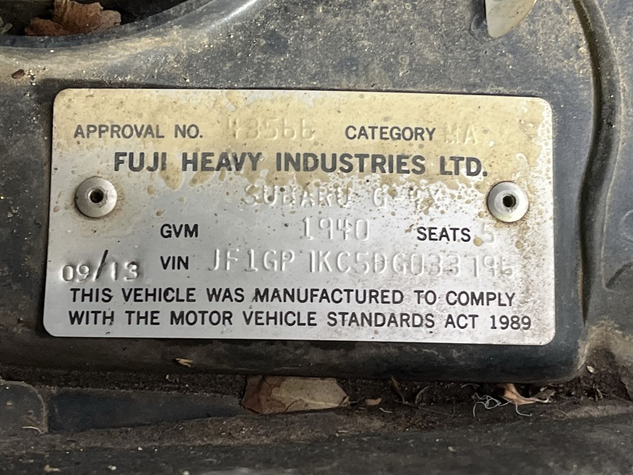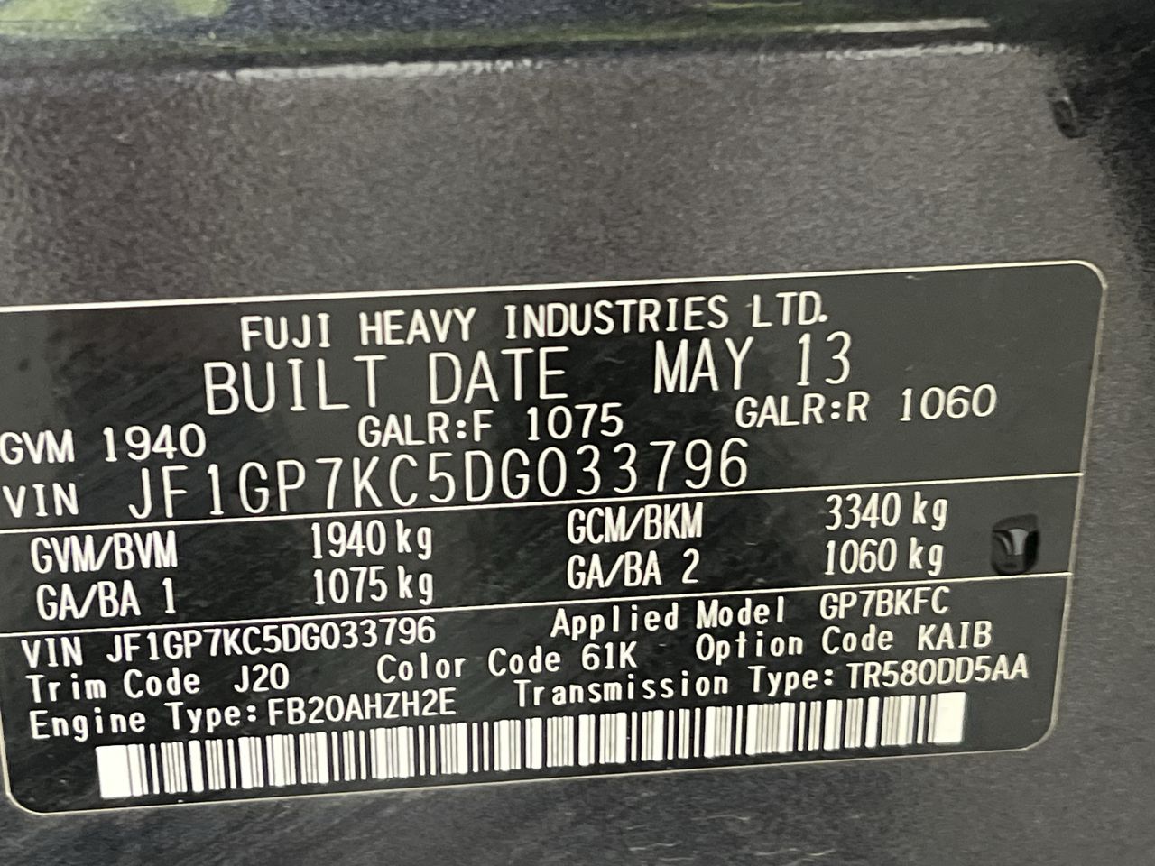 • VIN: JF1GP7KC5DG033796