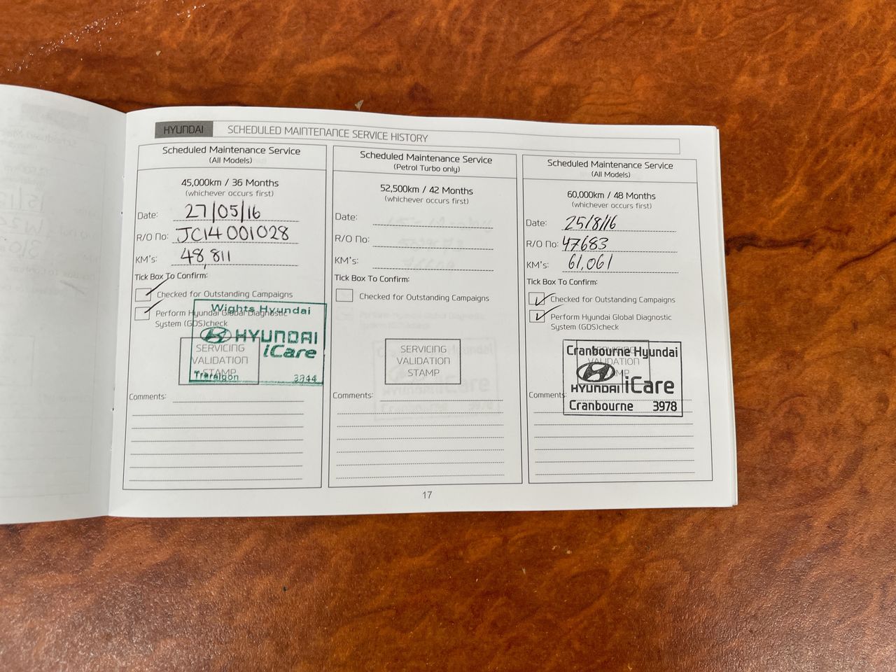 • Dents or marks on body consistent with age and kilometres.
