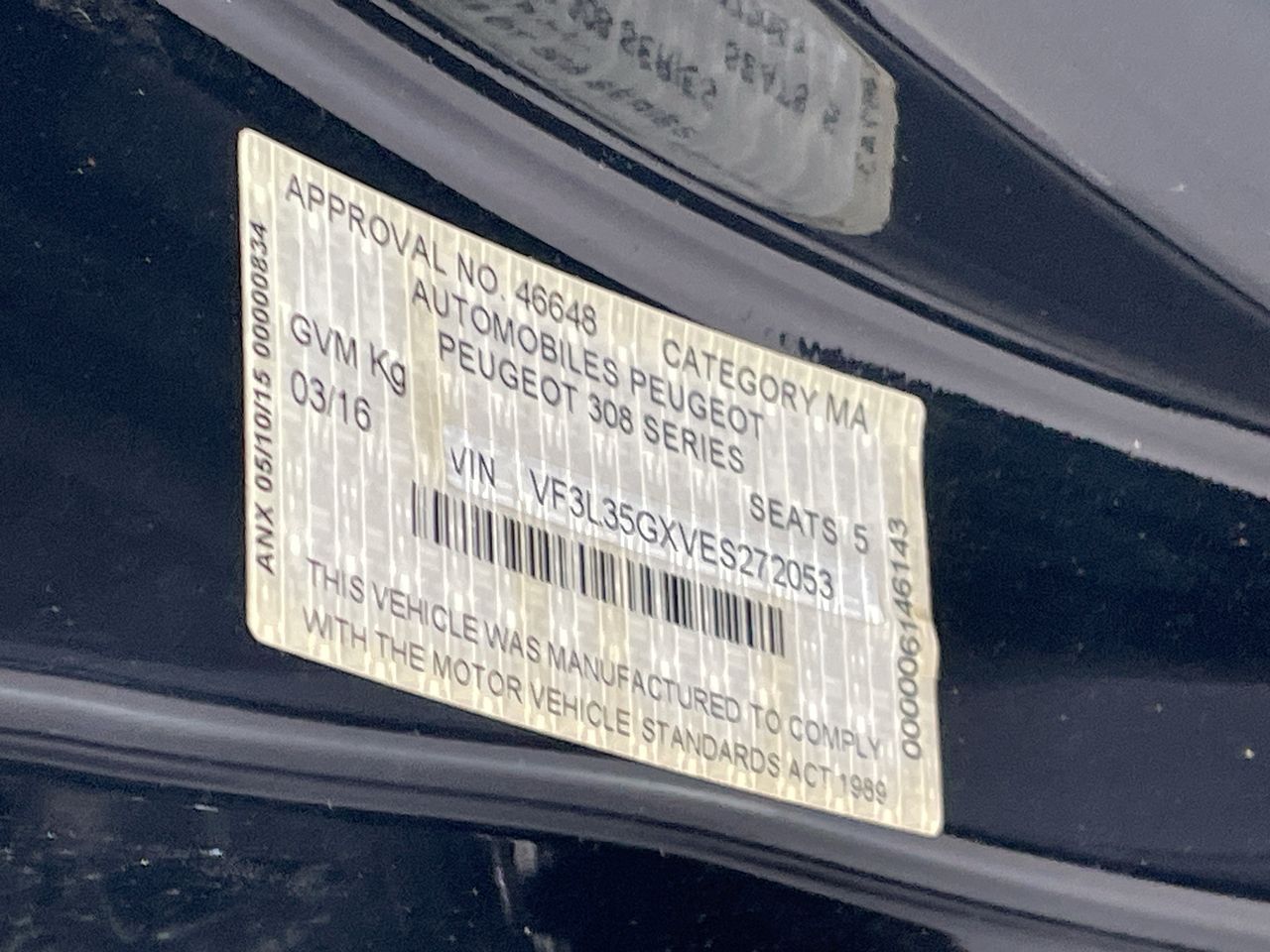 (SN:VF3L35GXVES272053) (137051-2)