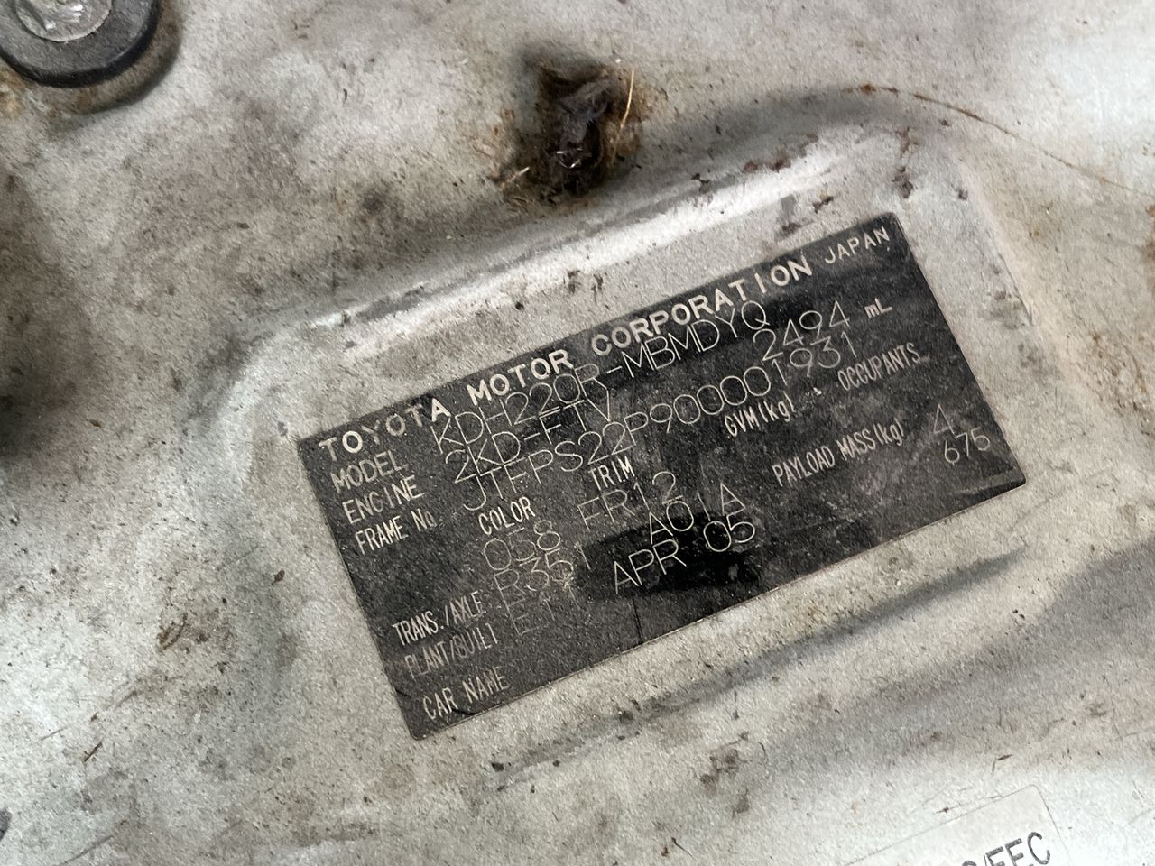 Part of Sale 2005 Toyota HiAce SUPER LWB KDH220R Turbo Diesel (WOVR)