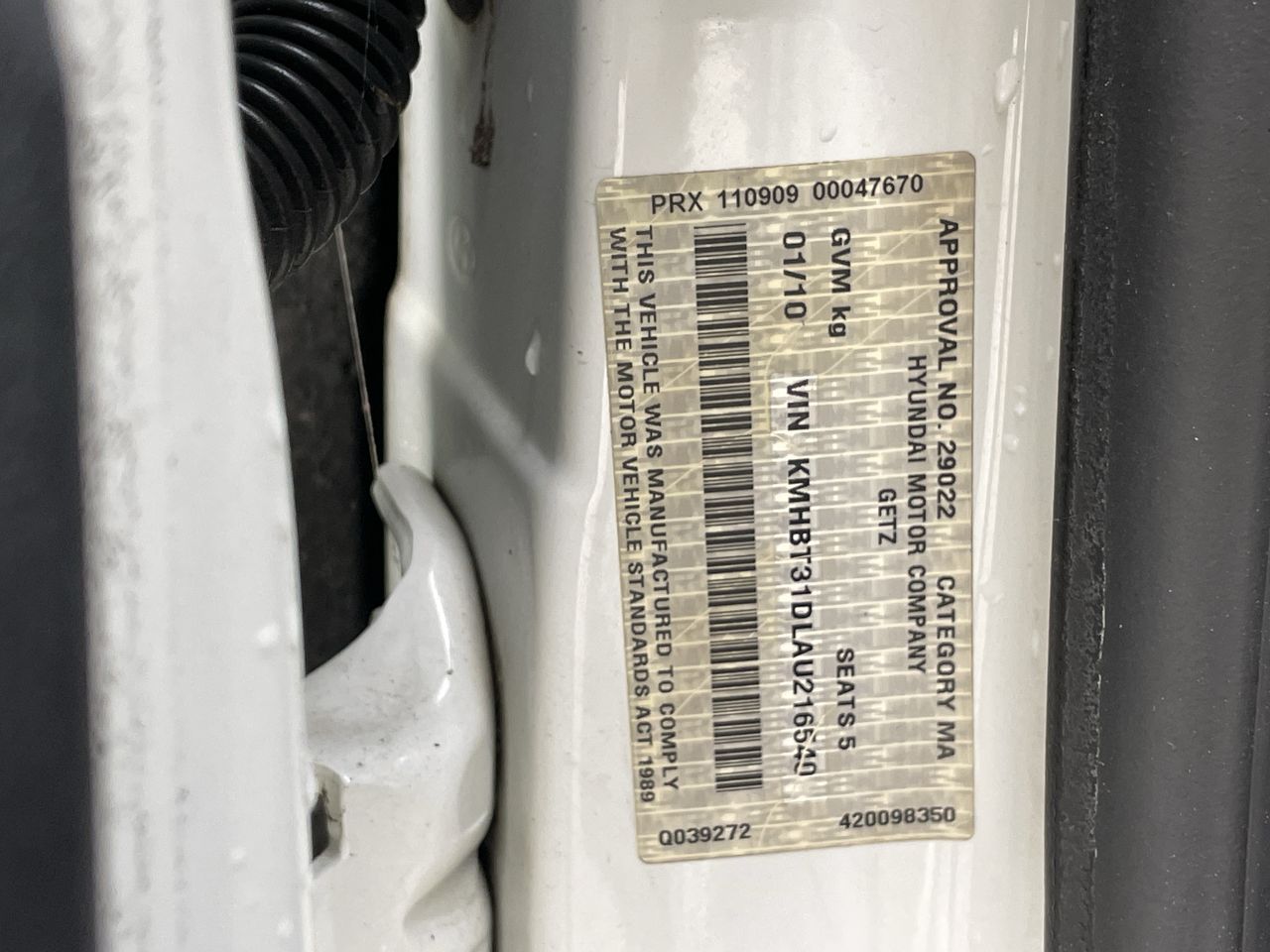 2010 Hyundai Getz S TB Manual Hatchback