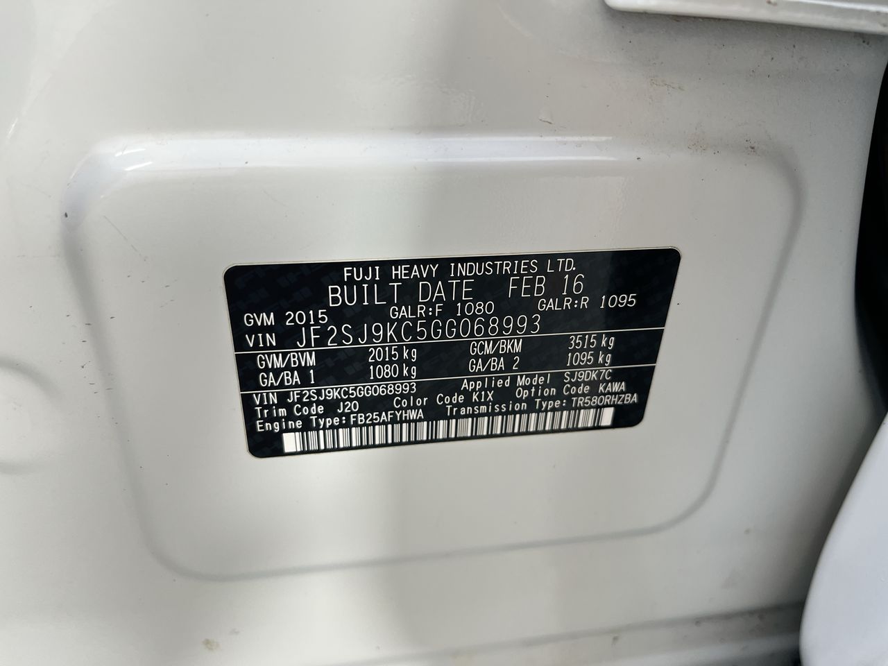(SN:JF2SJ9KC5GG068993) (129494-255)