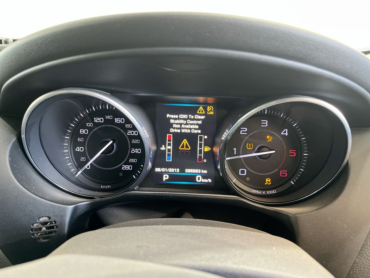 • Interior: Tyre pressure and master warning lights on.
