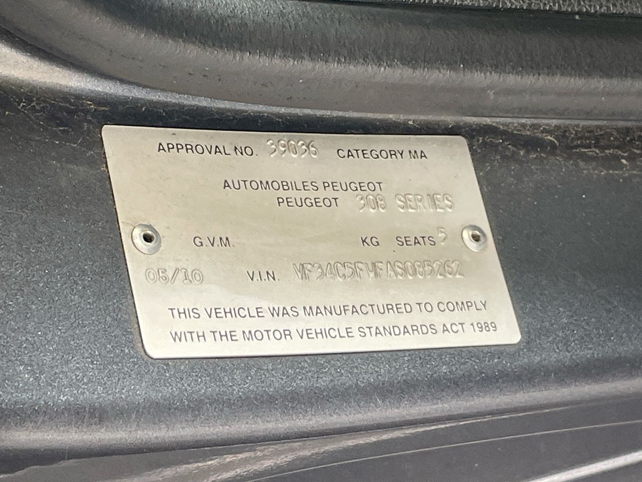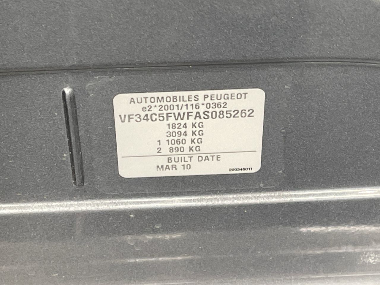• VIN: VF34C5FWFAS085262