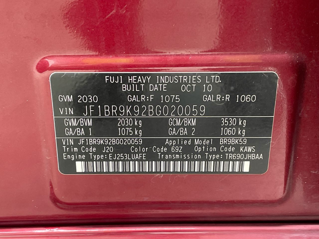 • VIN: JF1BR9K92BG020059