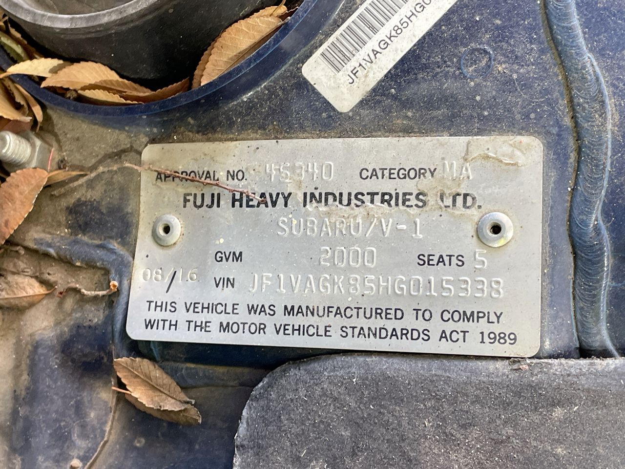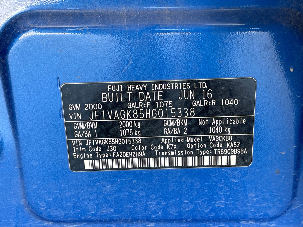 • VIN: JF1VAGK85HG015338