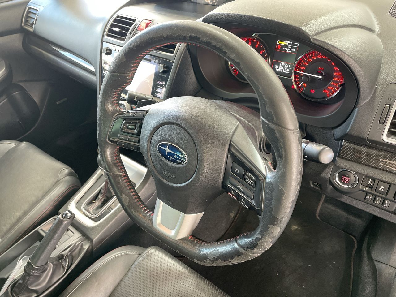 • Interior: Steering wheel worn.