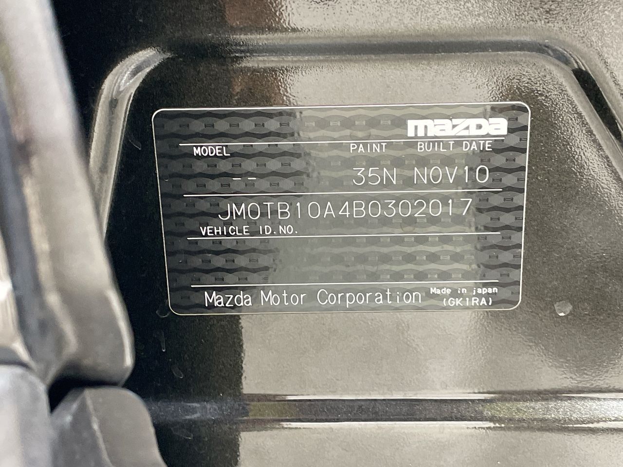 • VIN: JM0TB10A4B0302017