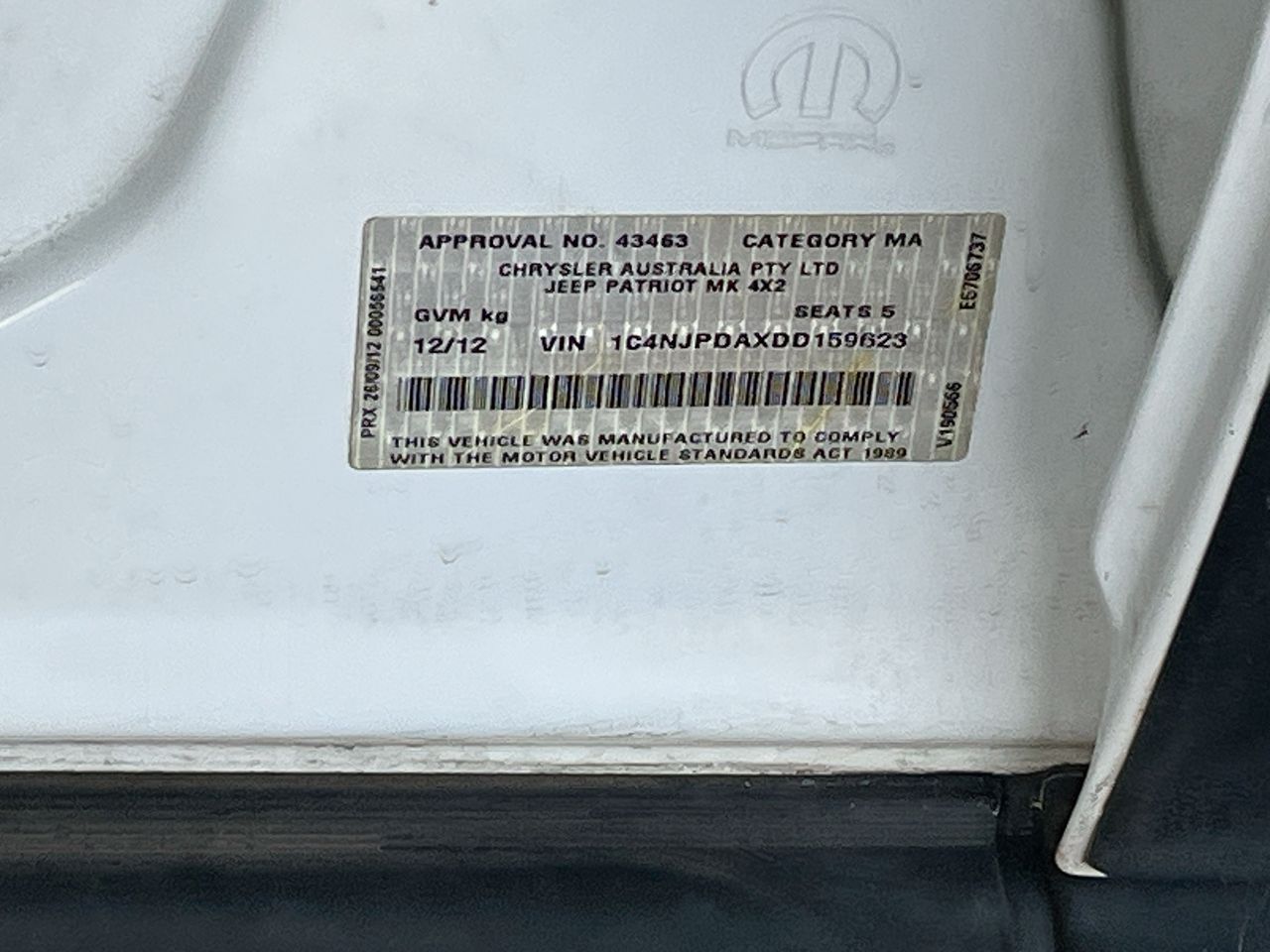 Part of Sale 2012 Jeep Patriot Sport MK CVT Wagon