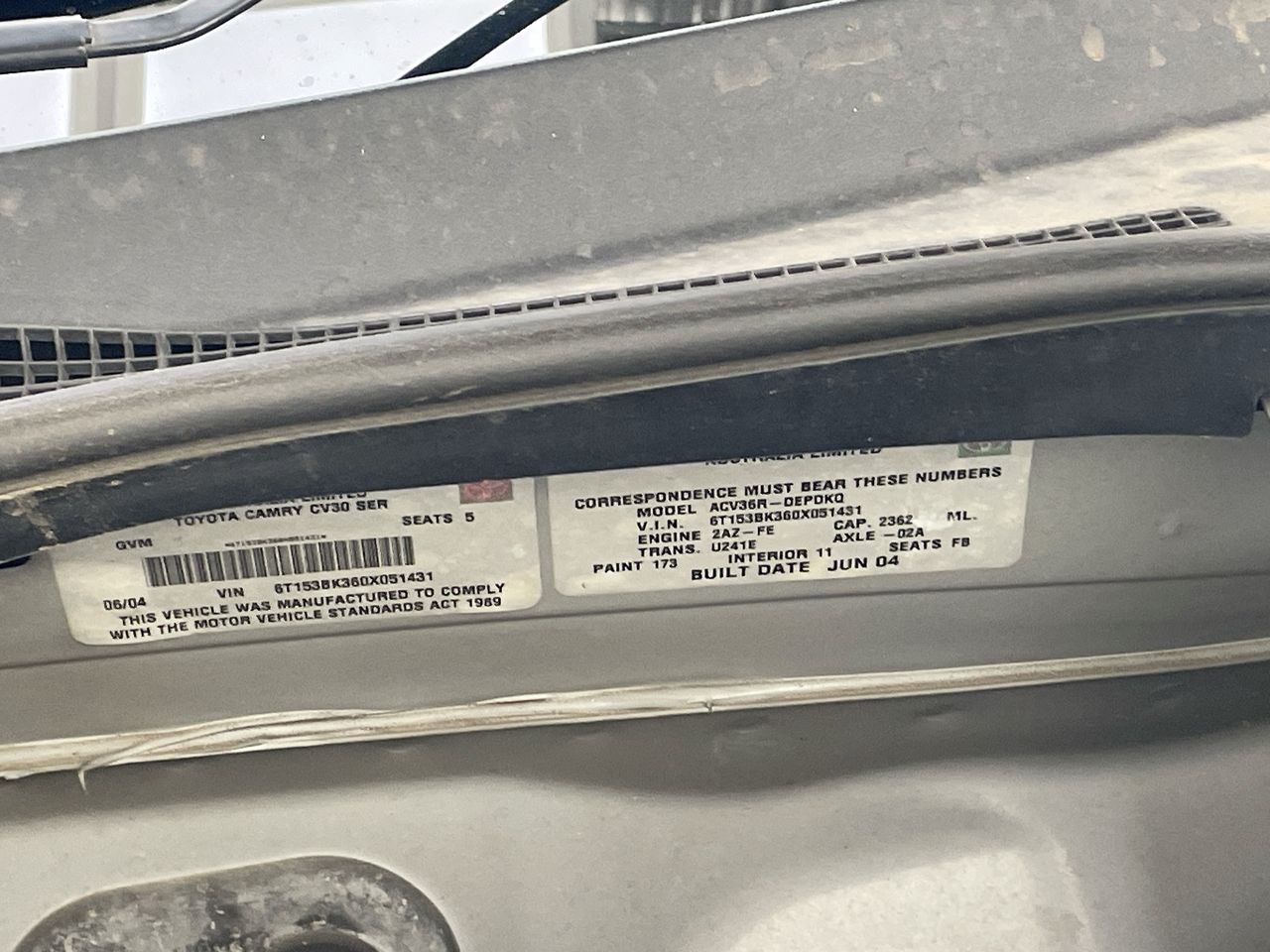 | Part of Sale | 2004 Toyota Camry Altise ACV36R Automatic Sedan | ||||||||||||||