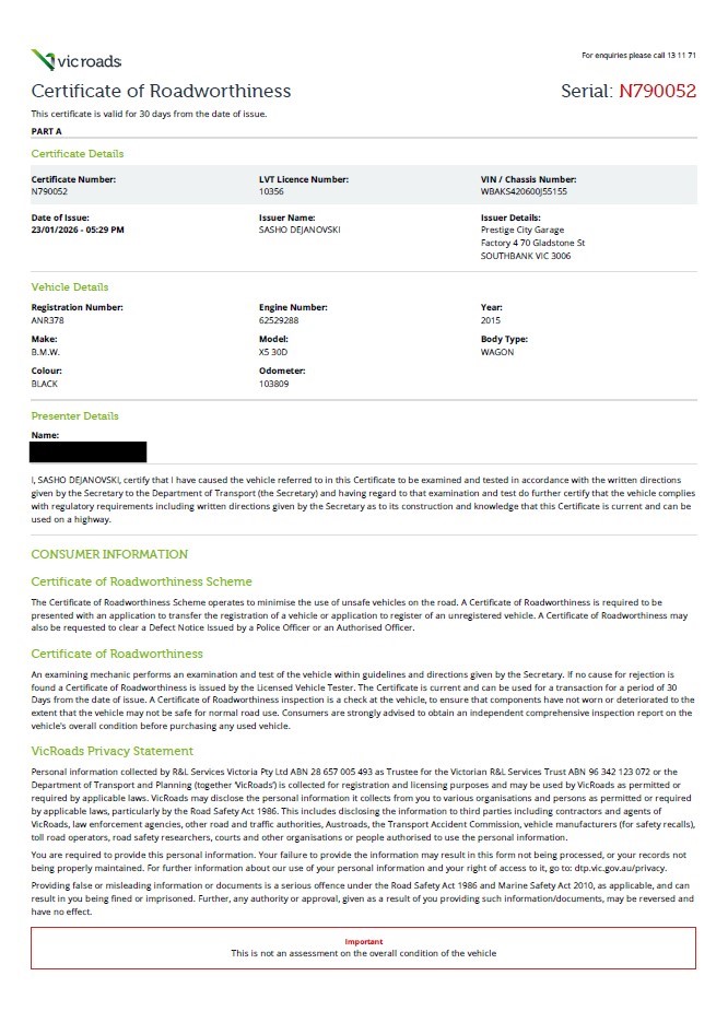 For further advice and information regarding Registration in VIC please CLICK HERE to be directed to the VIC Roads website.