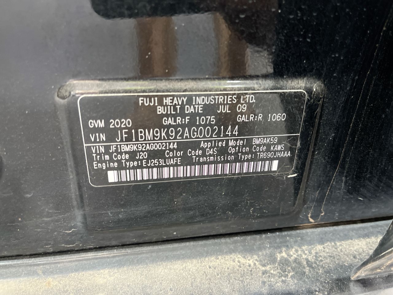 • VIN: JF1BM9K92AG002144