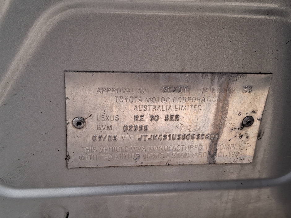 Part of Sale 2003 Lexus RX RX330 SPORTS MCU38R Automatic Wagon