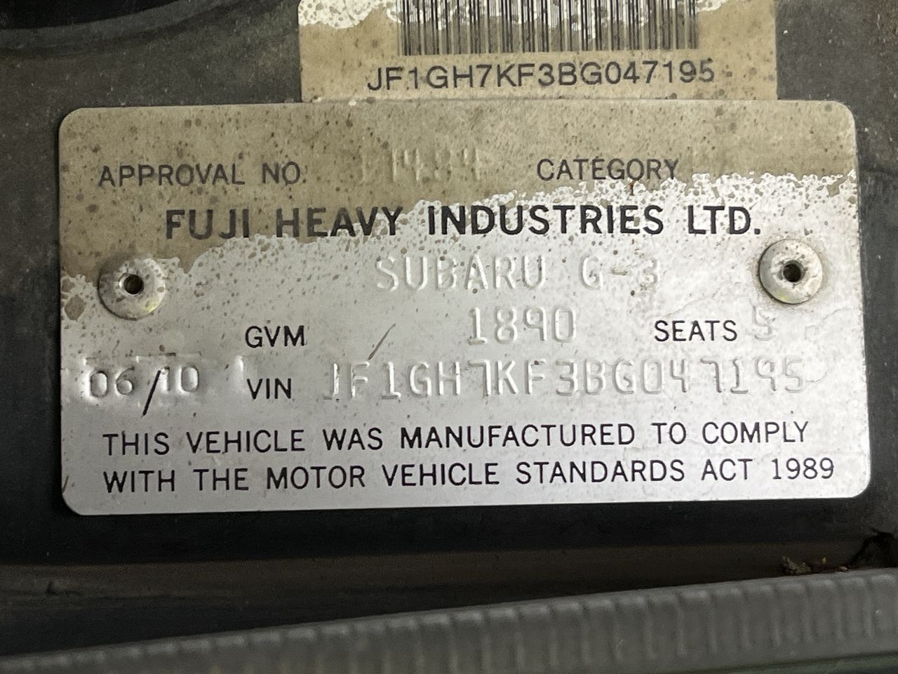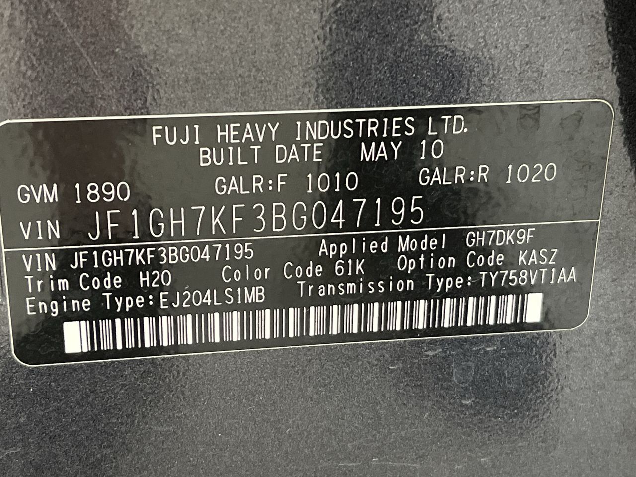 • VIN: JF1GH7KF3BG047195