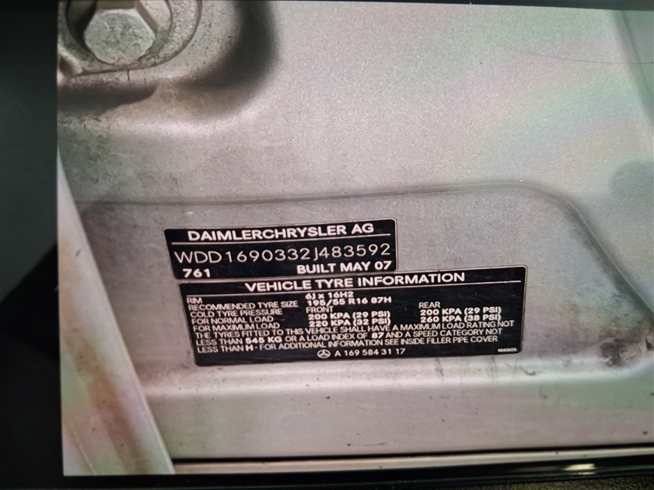 Part of Sale 2007 Mercedes Benz A200 Elegance W169 CVT Hatchback