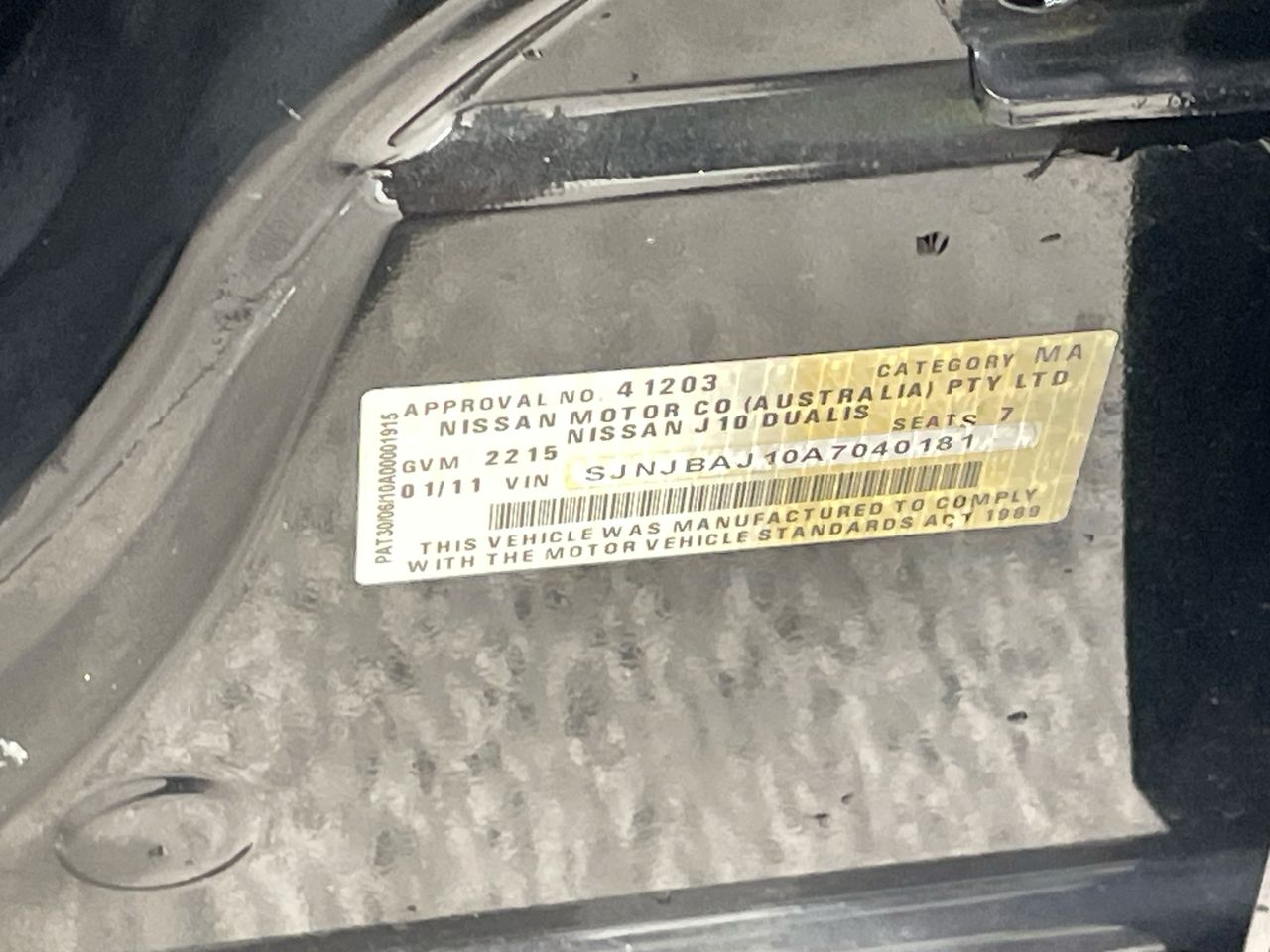 • VIN: SJNJBAJ10A7040181