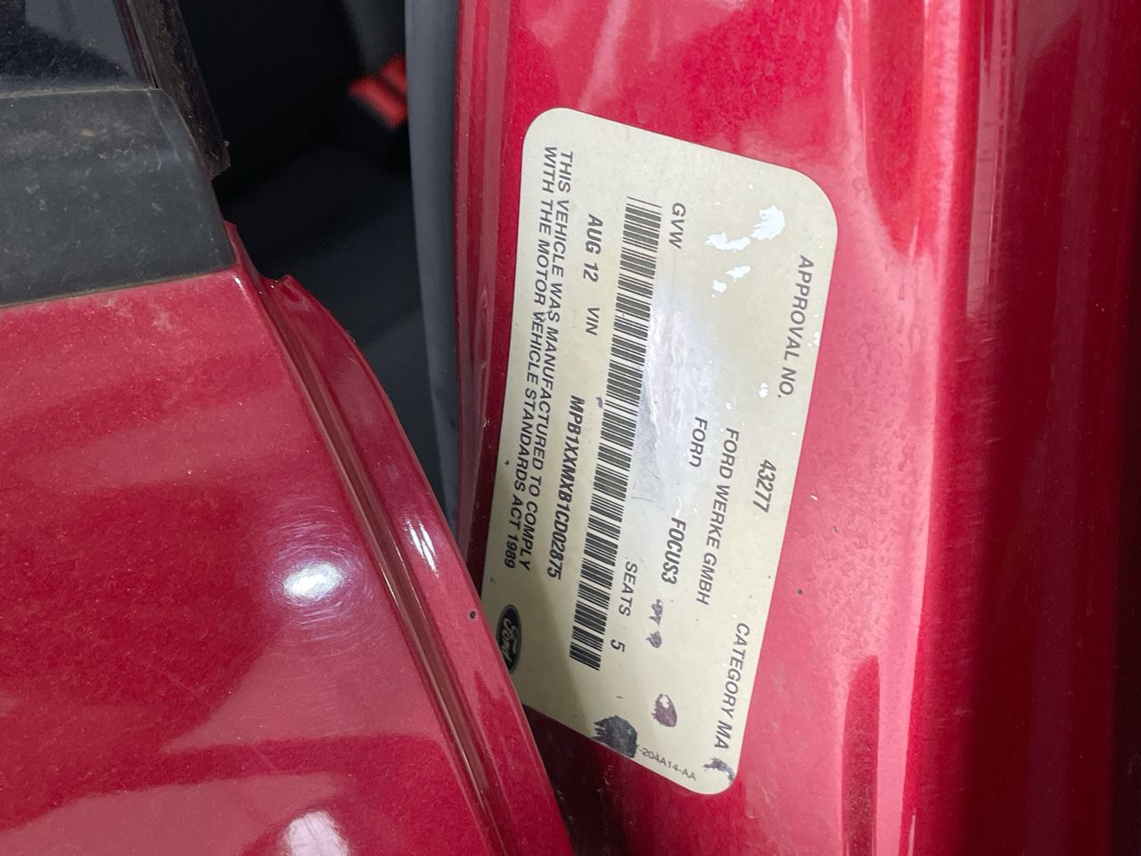 | Part of Sale | 2012 Ford Focus Ambiente LW II Manual Hatchback | ||||||||||||||