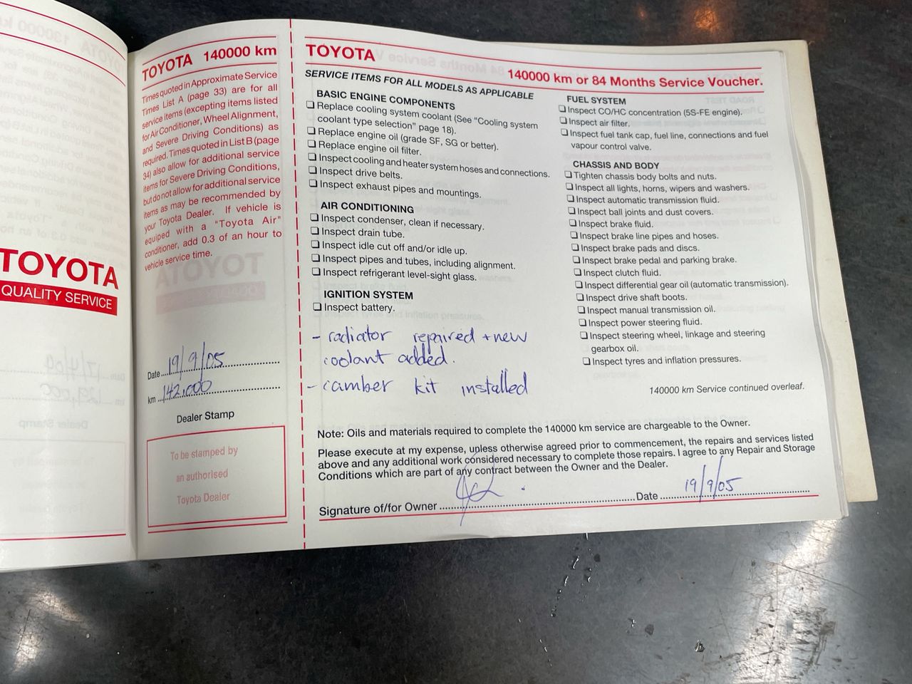 All work carried out must be completed by a licenced Refrigeration Mechanic and is required to provide on request: