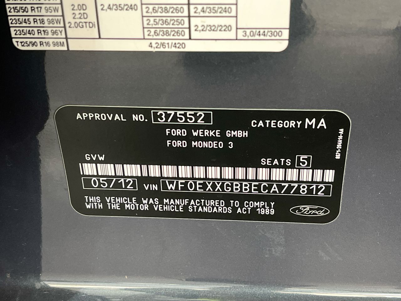 | Part of Sale | 2012 Ford Mondeo LX MC Turbo Diesel Automatic Hatchback | ||||||||||||||