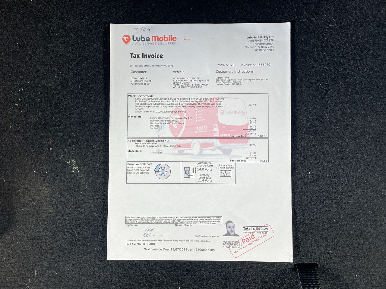 • Indicated Odometer Reading: 248015