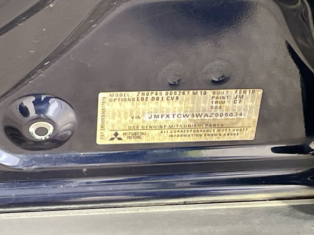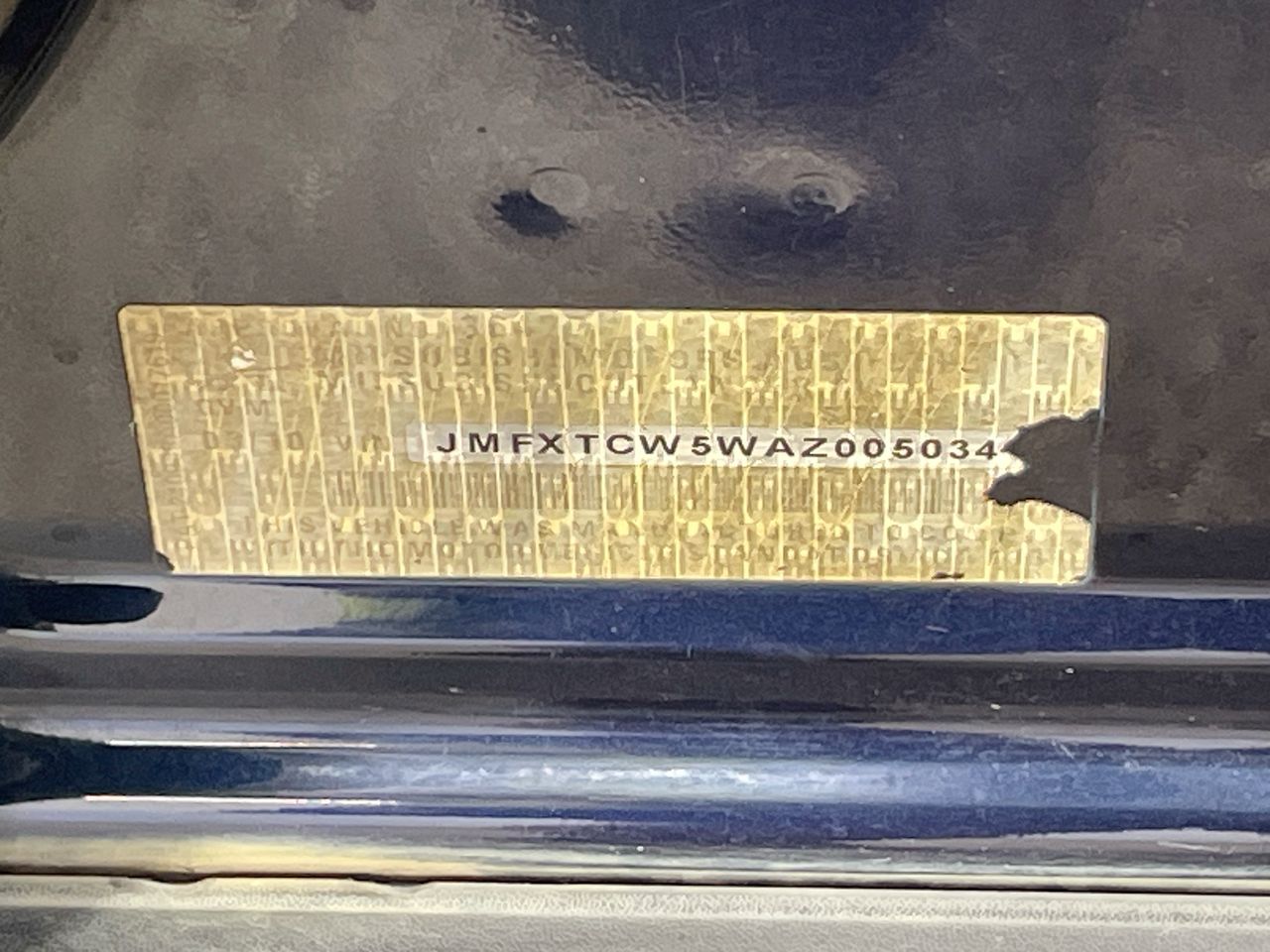 • VIN: JMFXTCW5WAZ005034