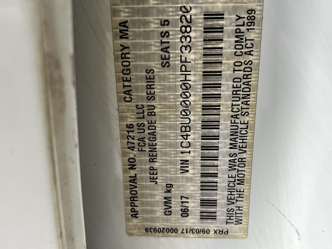 | Part of Sale | 2017 Jeep RENEGADE LONGITUDE BU Automatic Wagon | ||||||||||||||