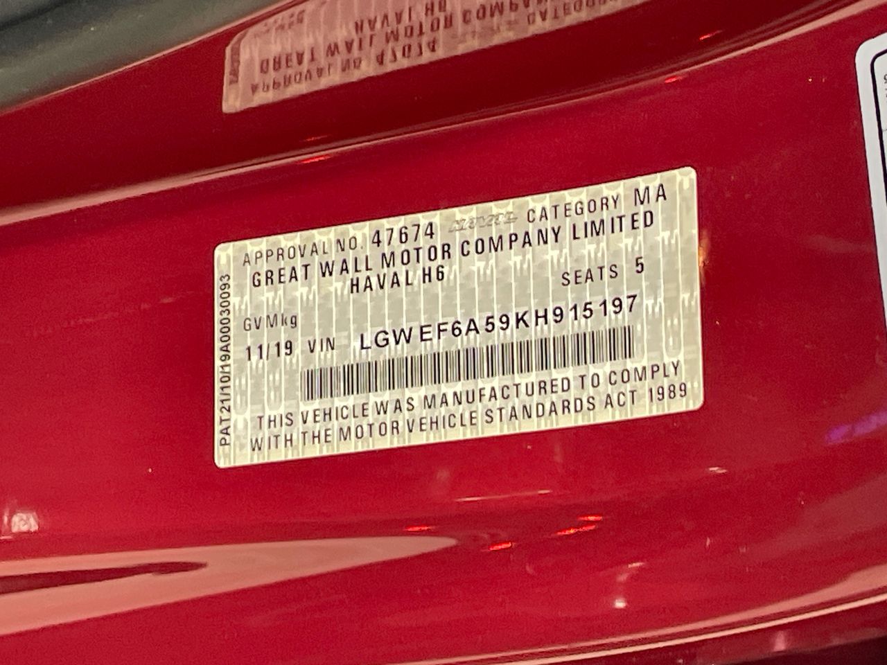 | Part of Sale | 2019 Haval H6 LUX 2WD Automatic Wagon | ||||||||||||||