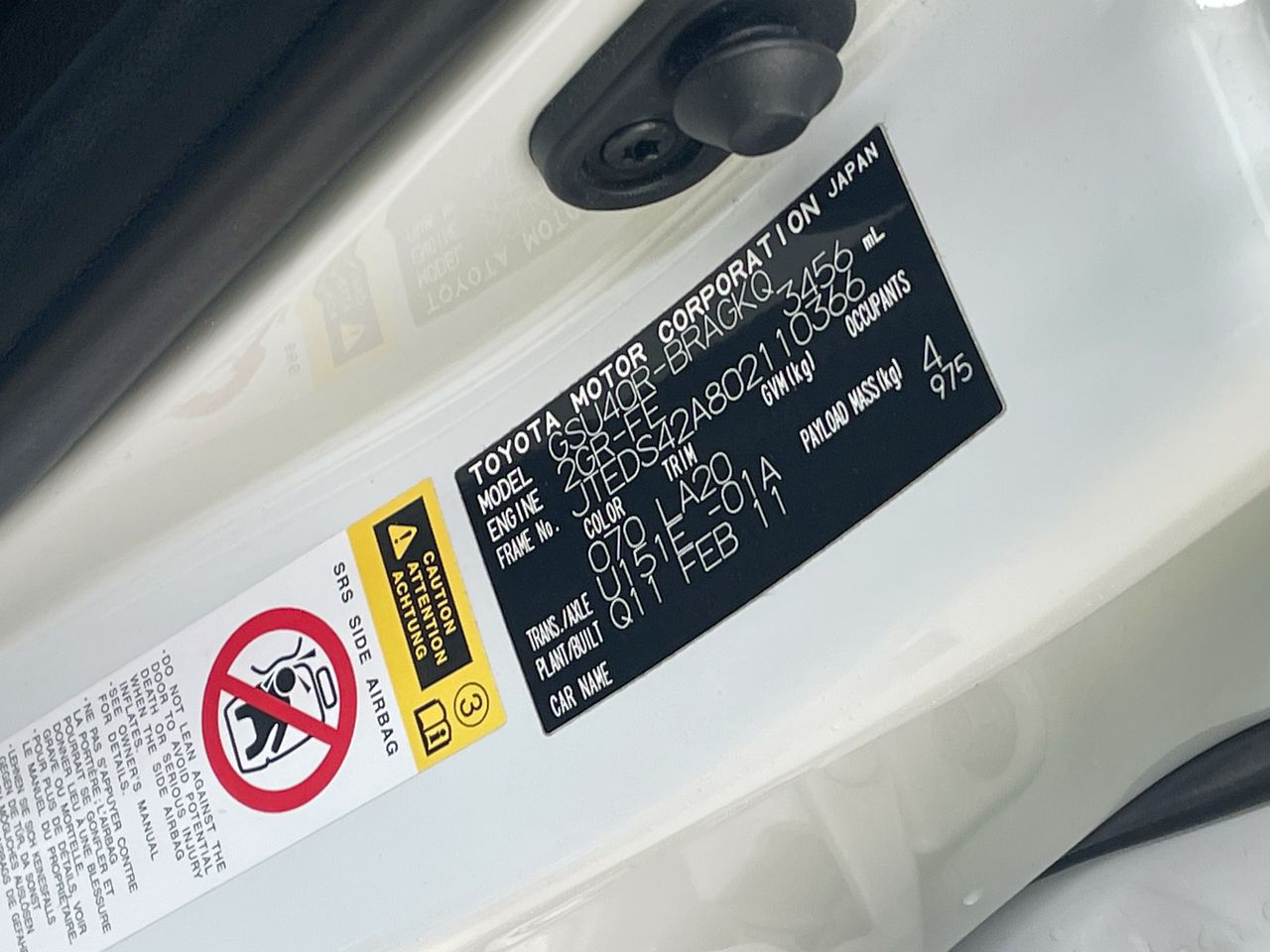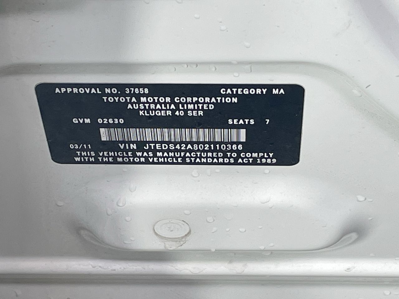 2011 Toyota Kluger 4X2 GRANDE GSU40R Automatic 7 Seats Wagon