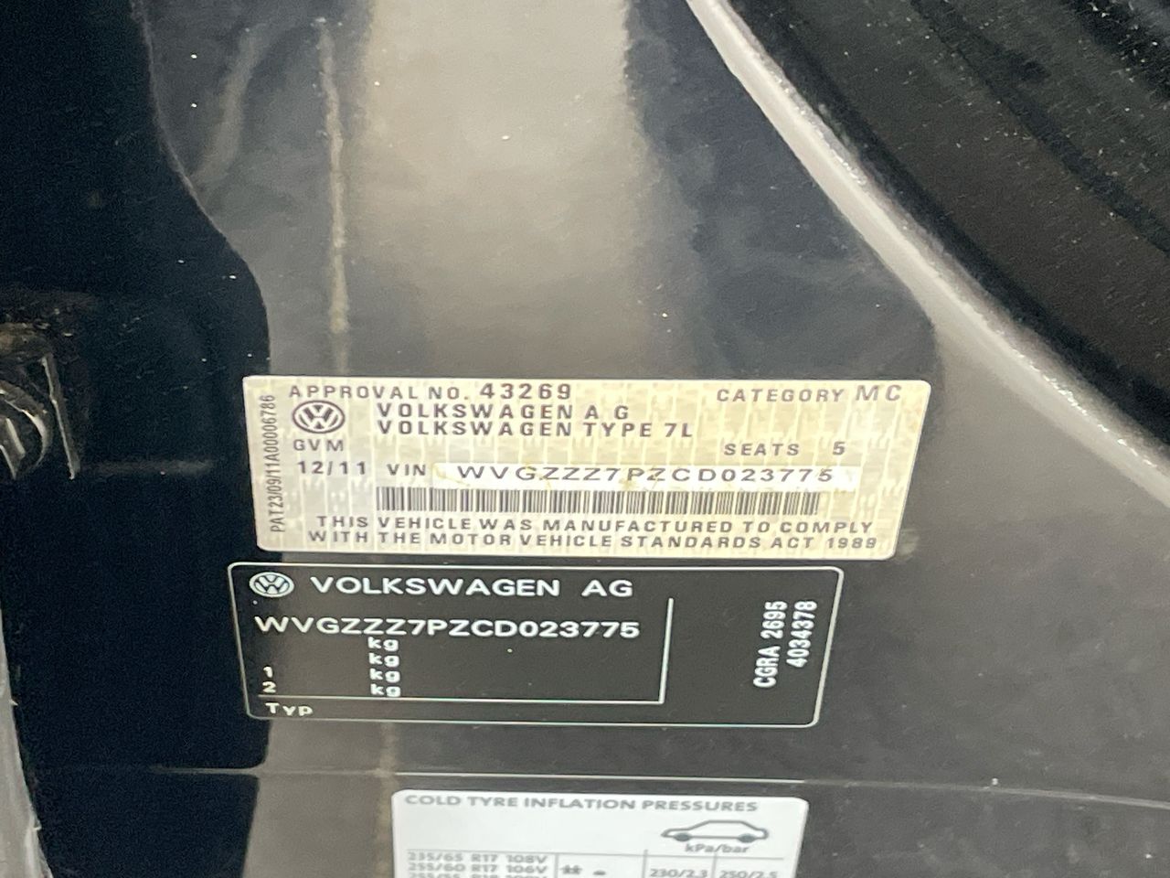 • VIN: WVGZZZ7PZCD023775