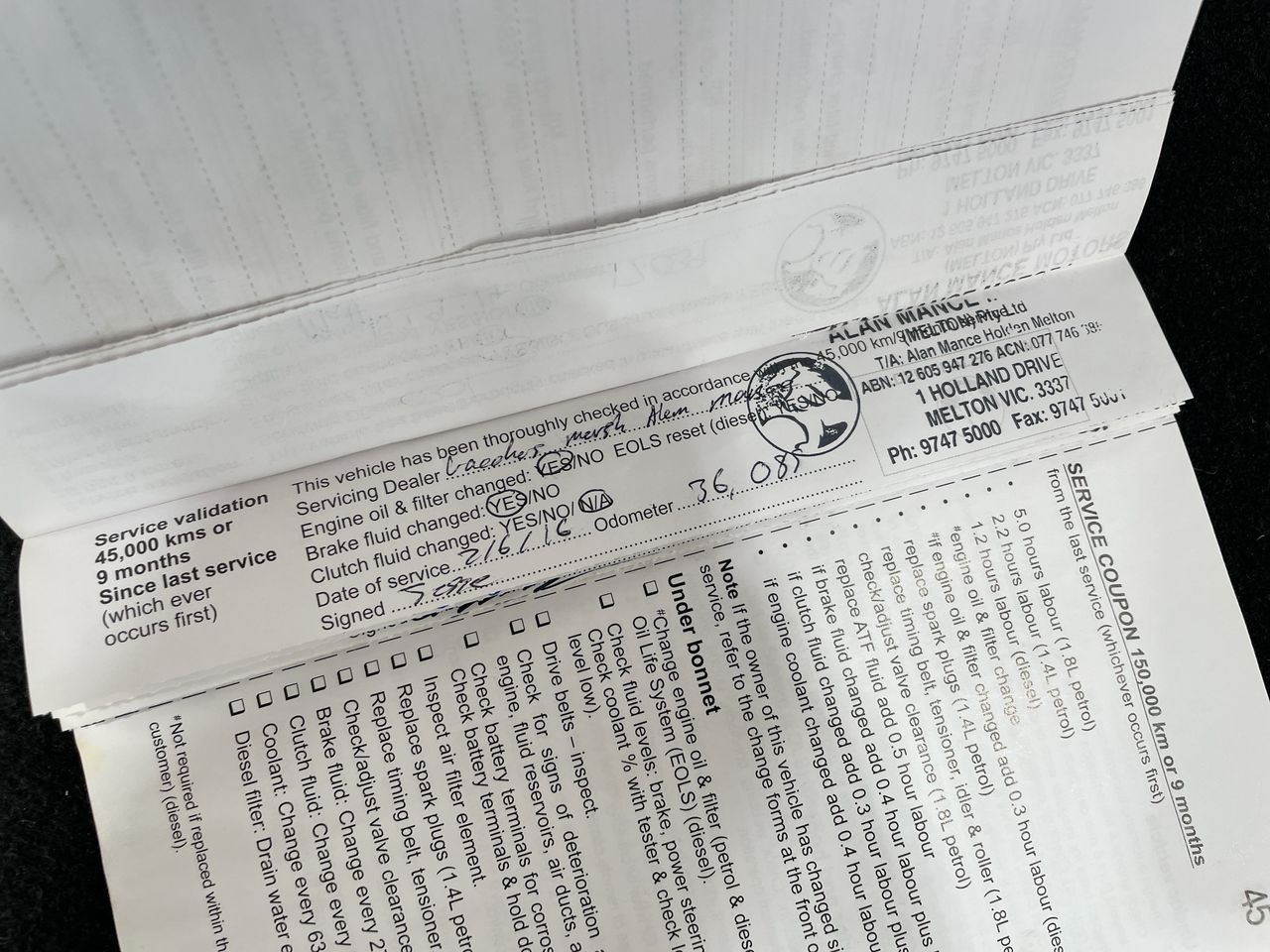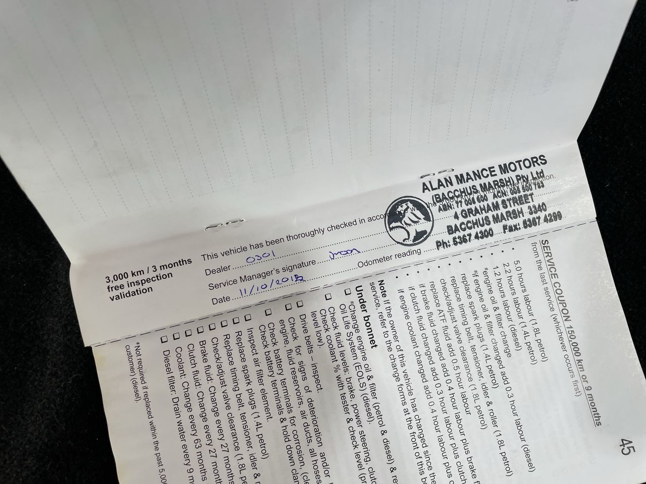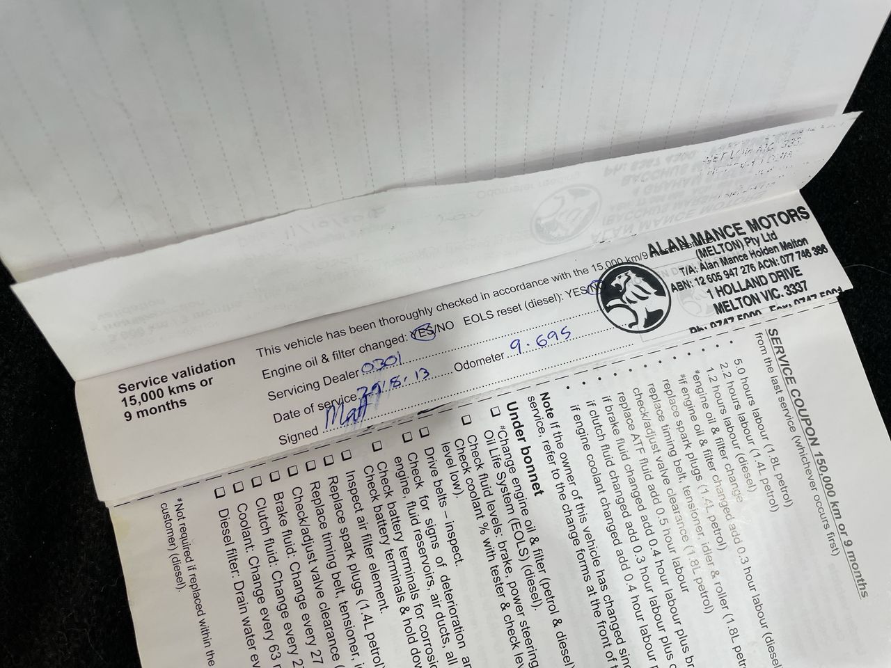 • Dents or marks on body consistent with age and kilometres.