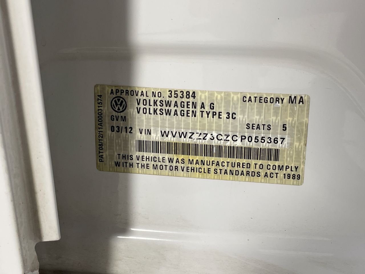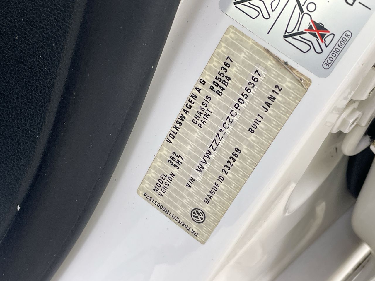 • VIN: WVWZZZ3CZCP055367