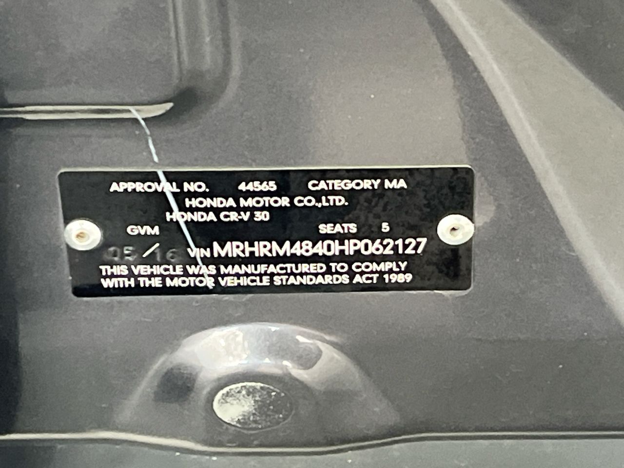 • VIN: MRHRM4840HP062127
