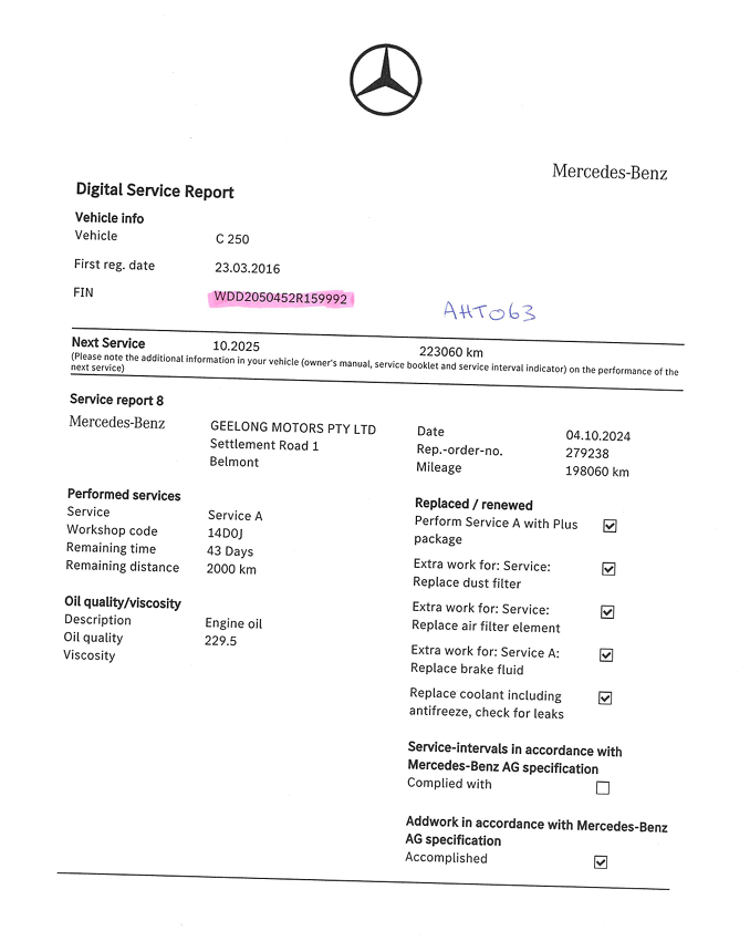 • VIN: WDD2050452R159992