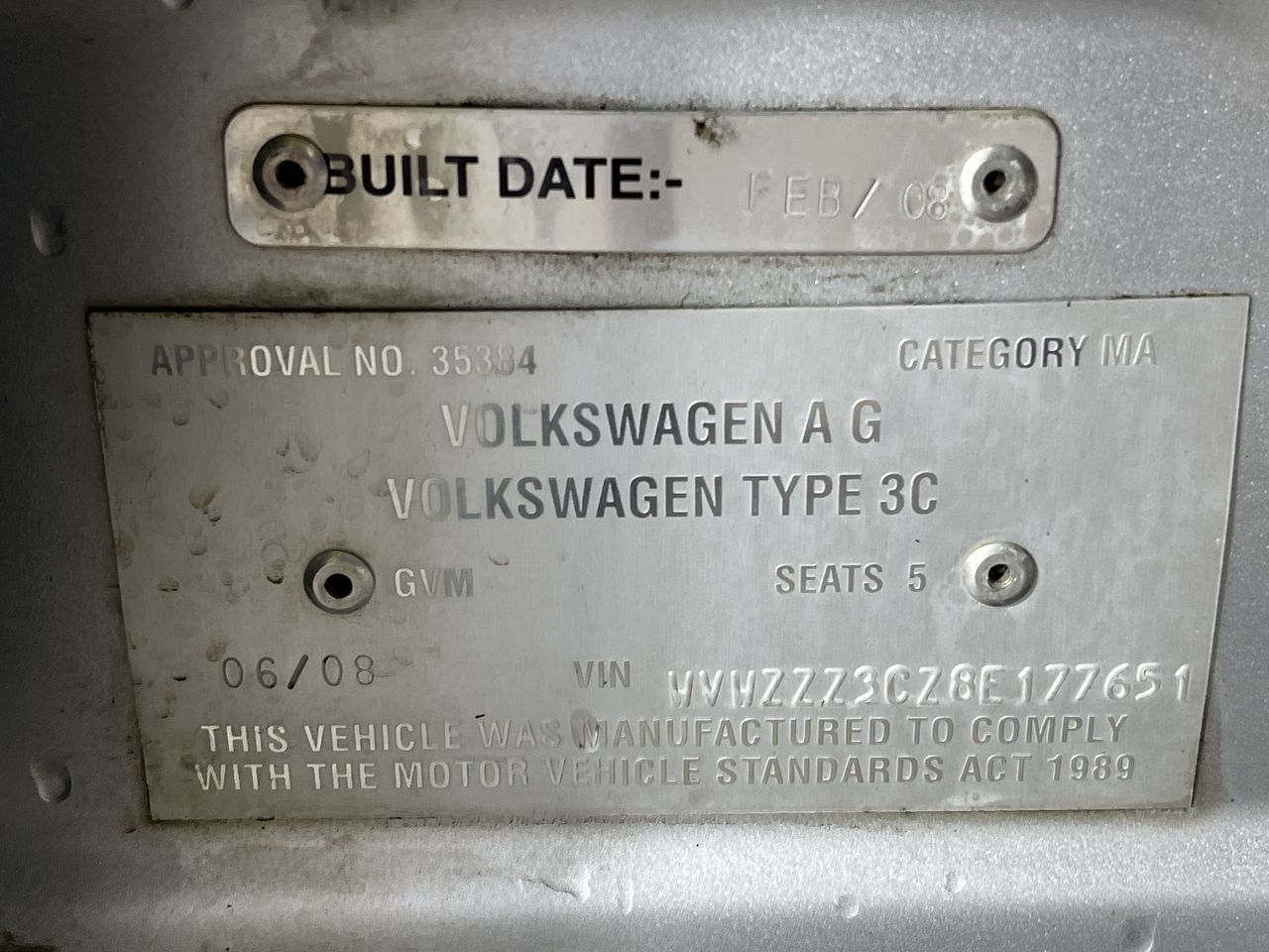 • VIN: WVWZZZ3CZ8E177651