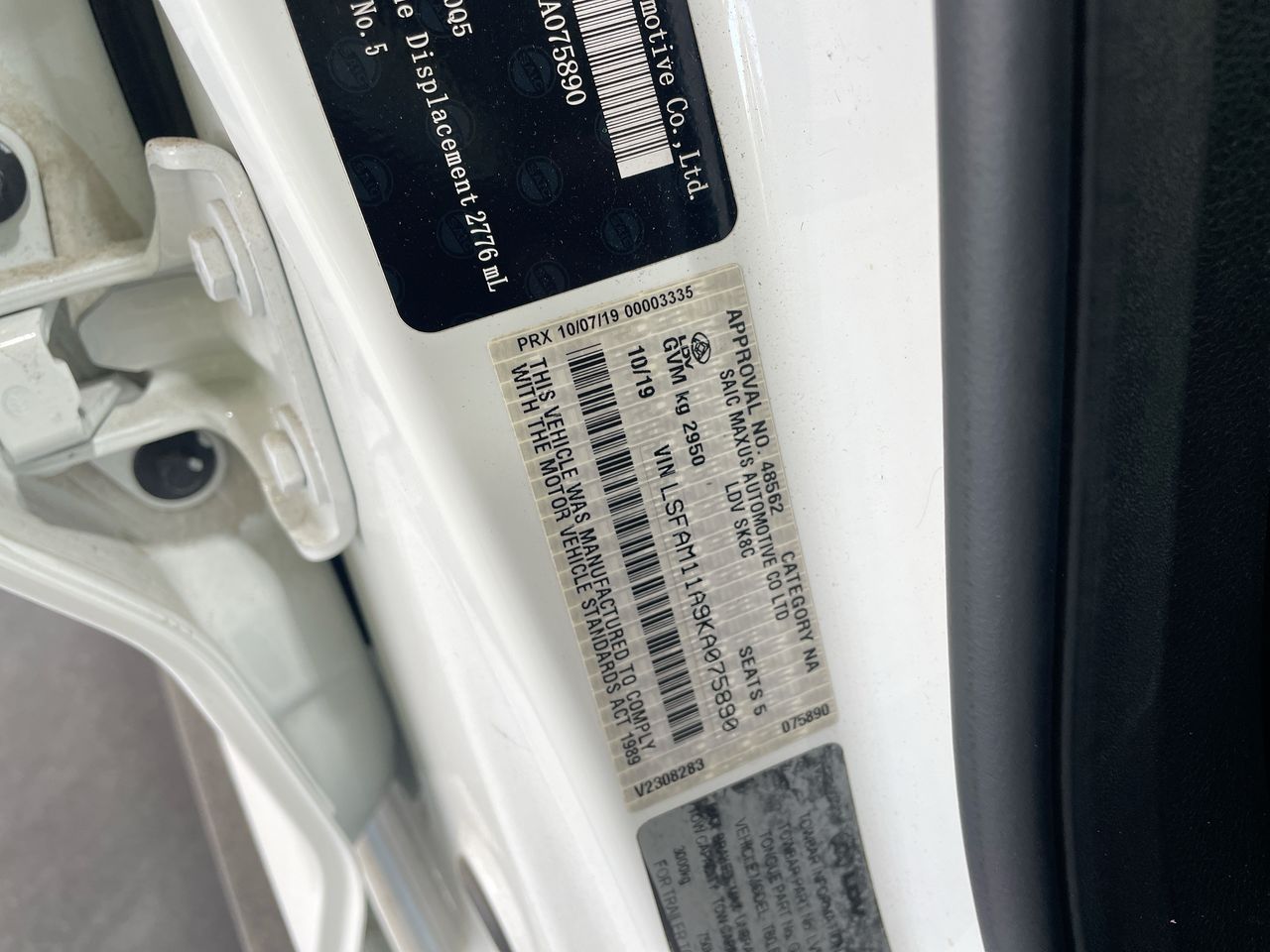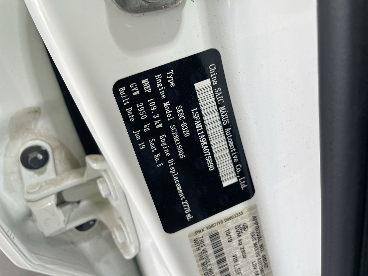 • VIN: LSFAM11A9KA075890