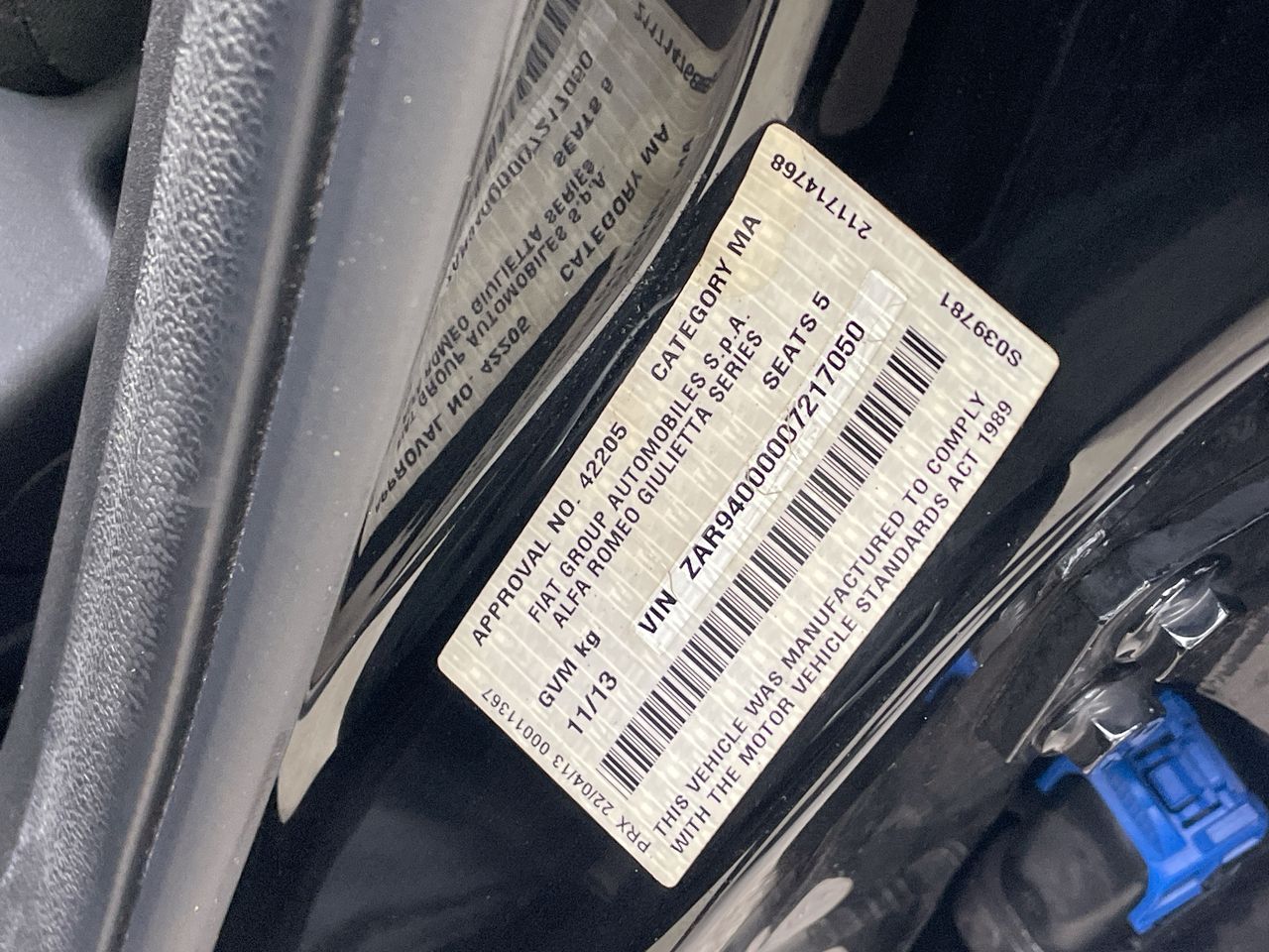 • VIN: ZAR94000007217050
