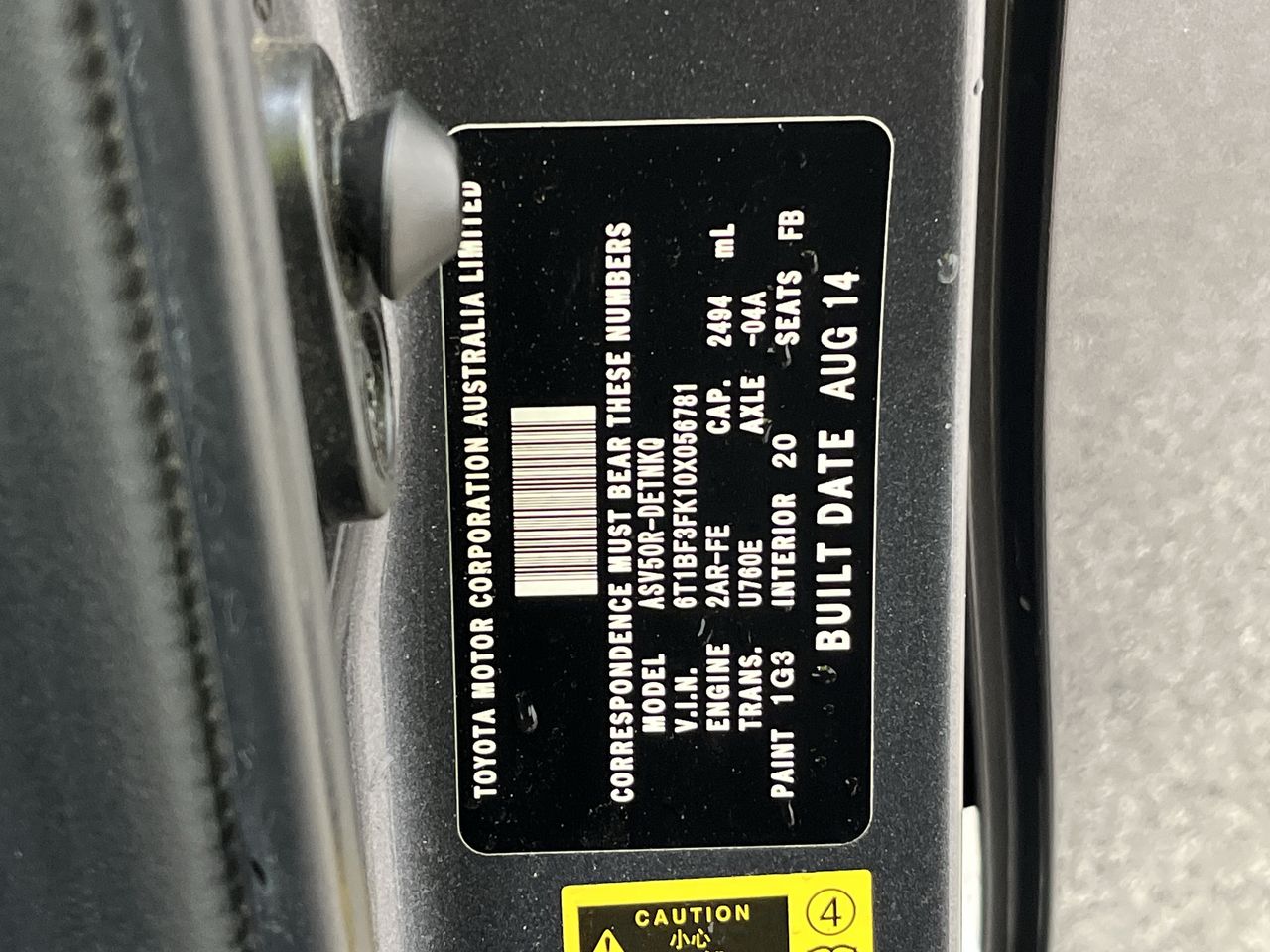 Part of Sale 2014 Toyota Camry Atara S ASV50R Automatic Sedan