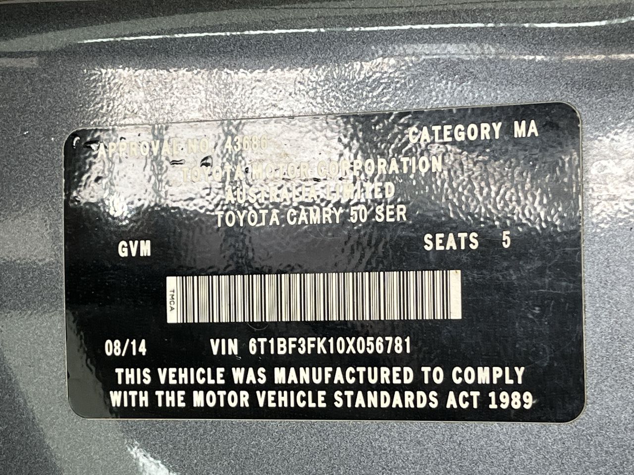 • VIN: 6T1BF3FK10X056781