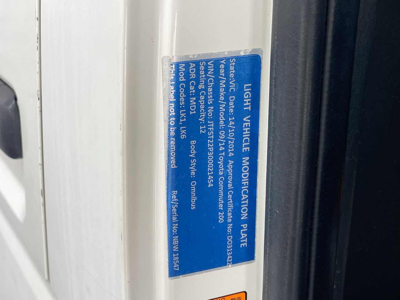 Part of Sale 2014 Toyota HiAce KDH223R Turbo Diesel Auto 14 Seats Bus
