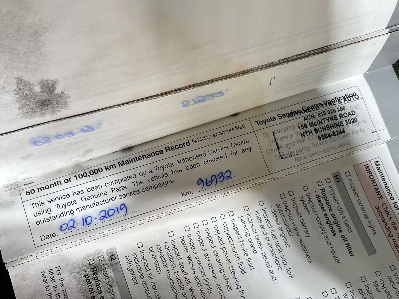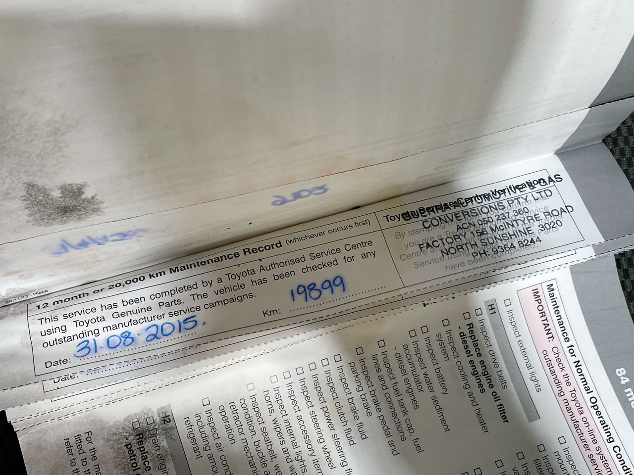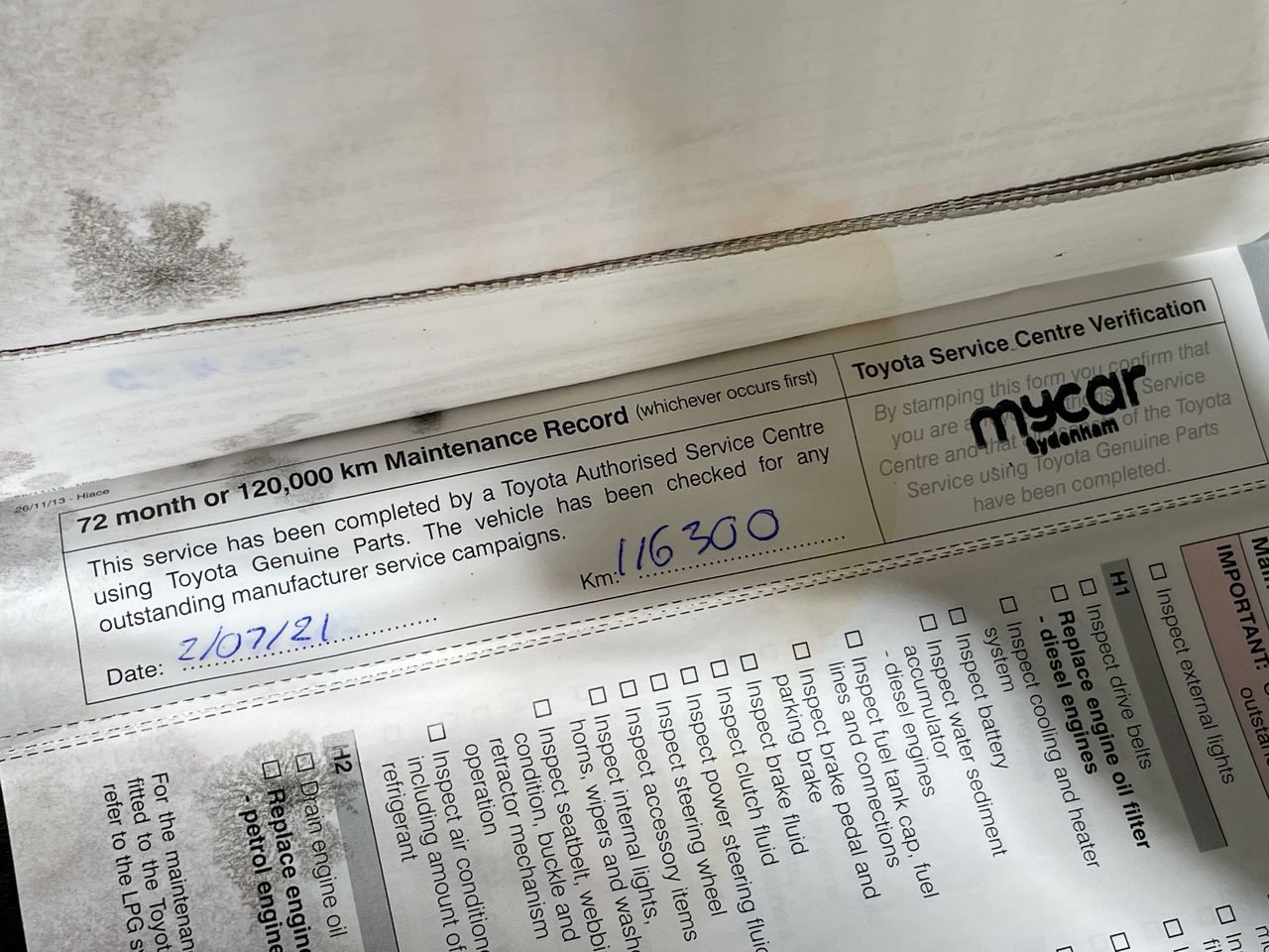 • Dents or marks on body consistent with age and kilometres.