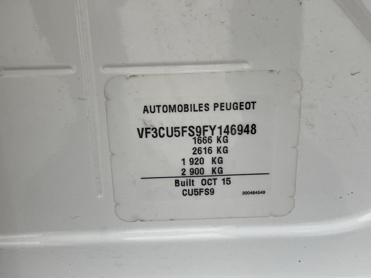 • VIN: VF3CU5FS9FY146948