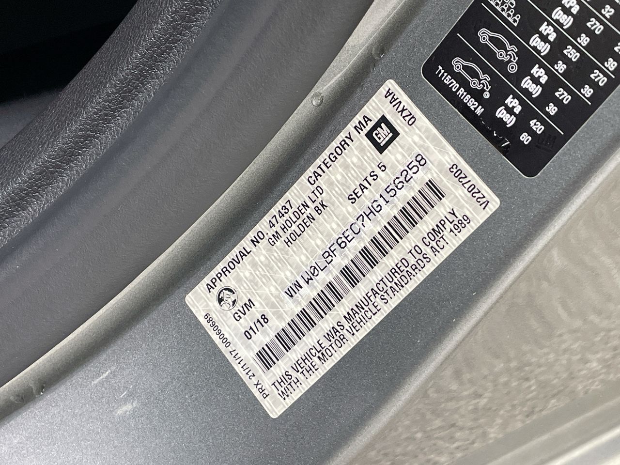 • VIN: W0LBF6EC7HG156258