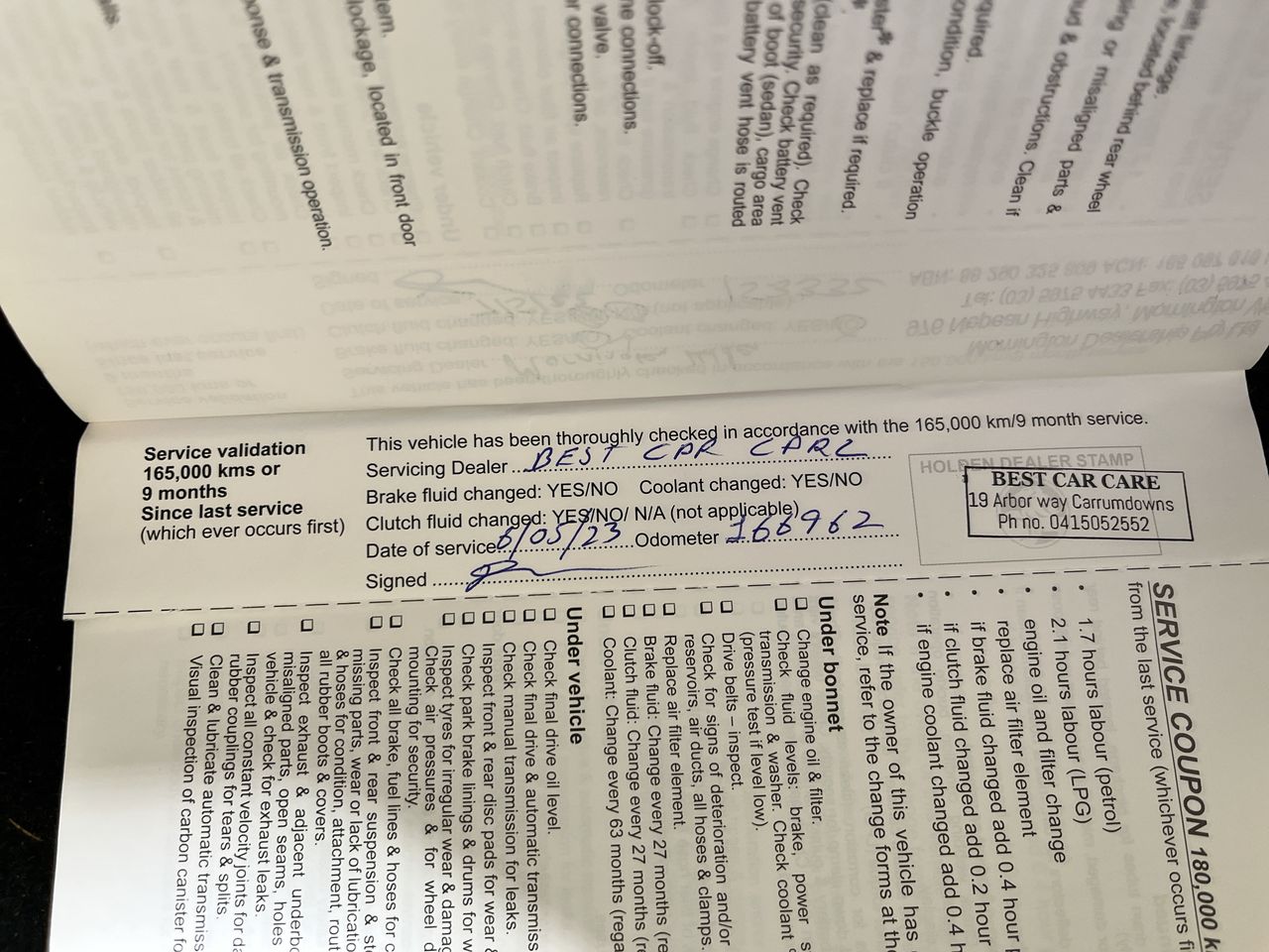 • Dents or marks on body consistent with age and kilometres.
