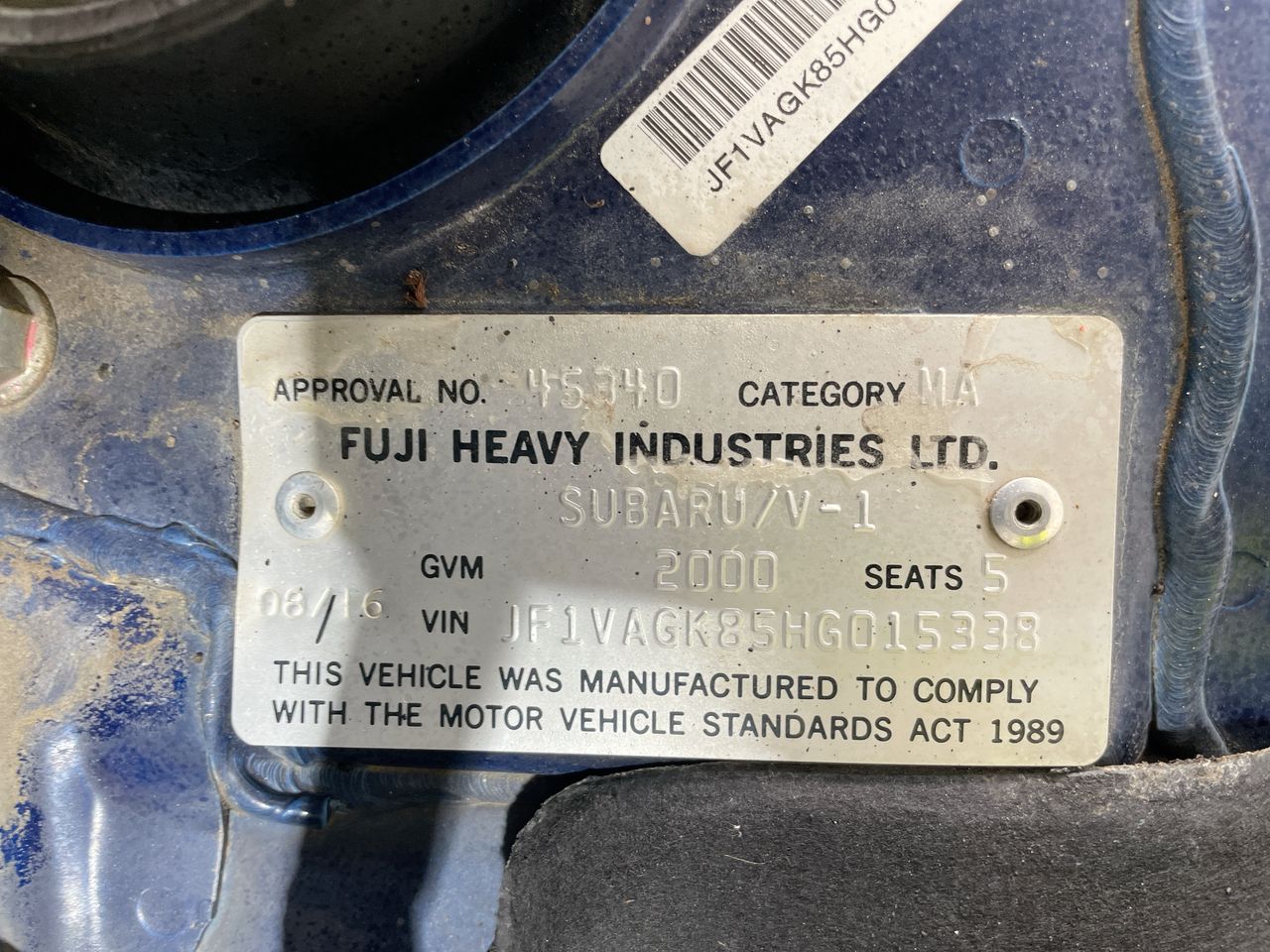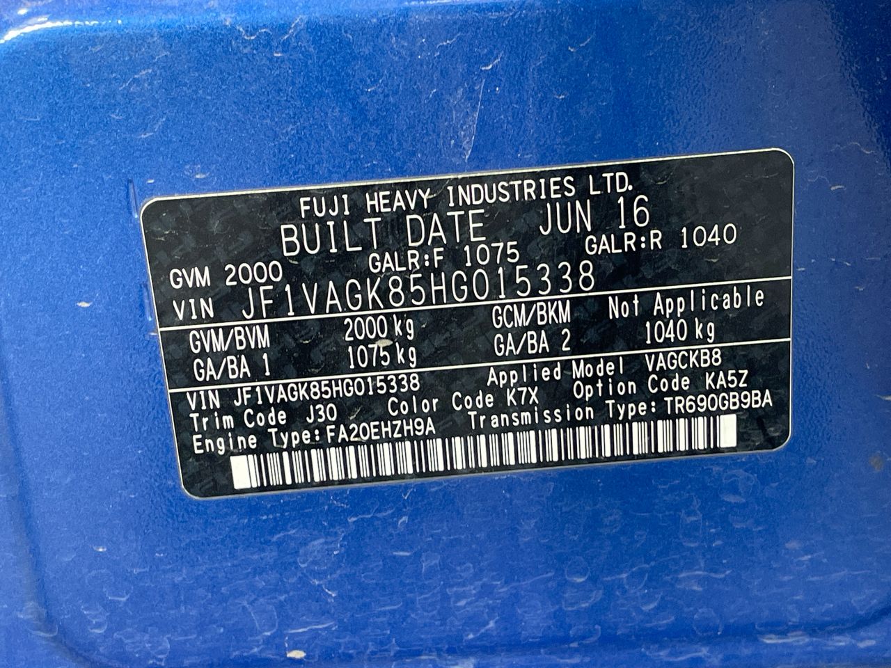 • VIN: JF1VAGK85HG015338