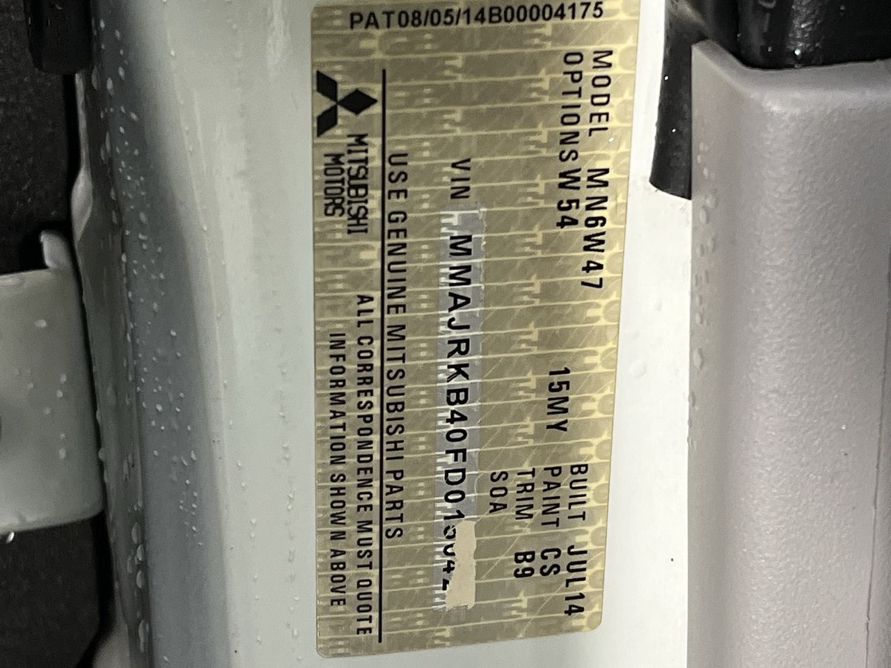 (SN:MMAJRKB40FD015042) (139821-1)